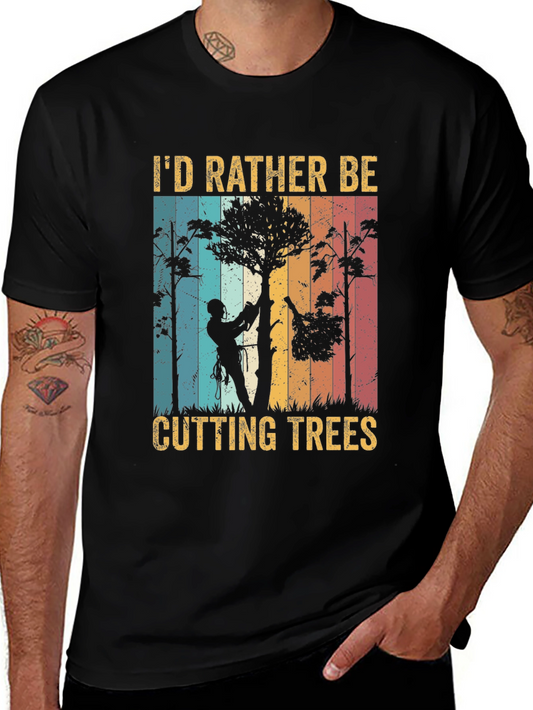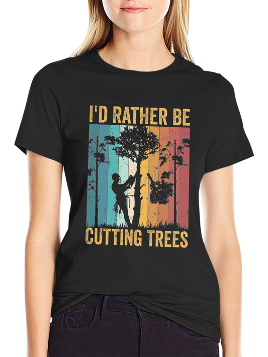 Camiseta Negra: Prefiero Cortar Árboles - Diseño Retro