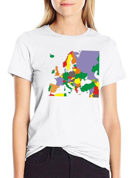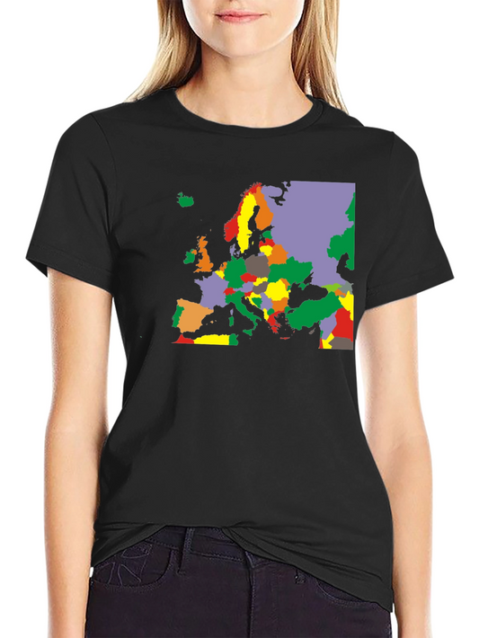 Camiseta Negra Mapa Europa Colorido Hombre Casual