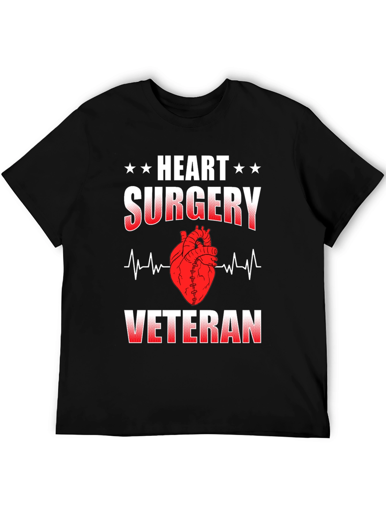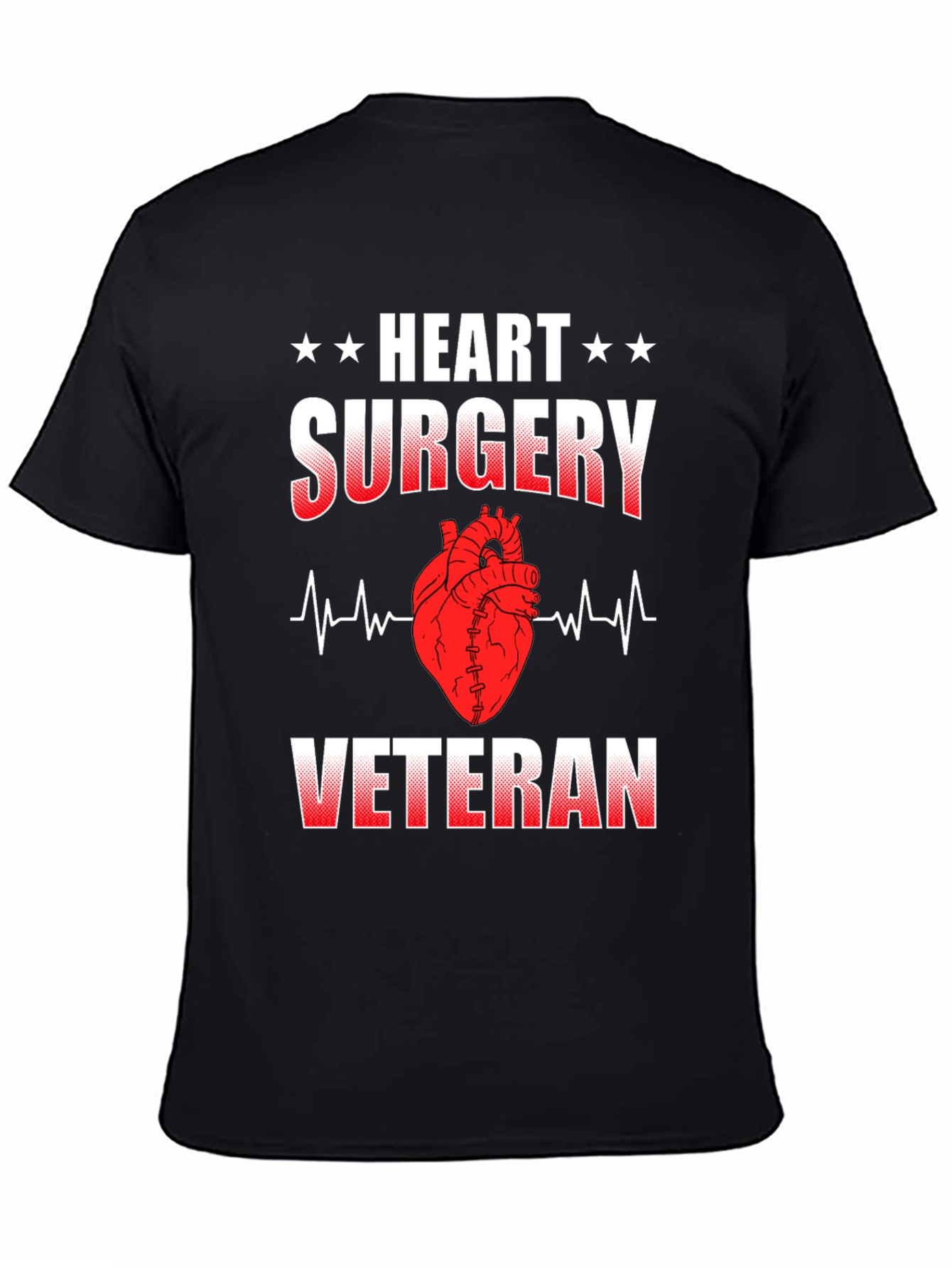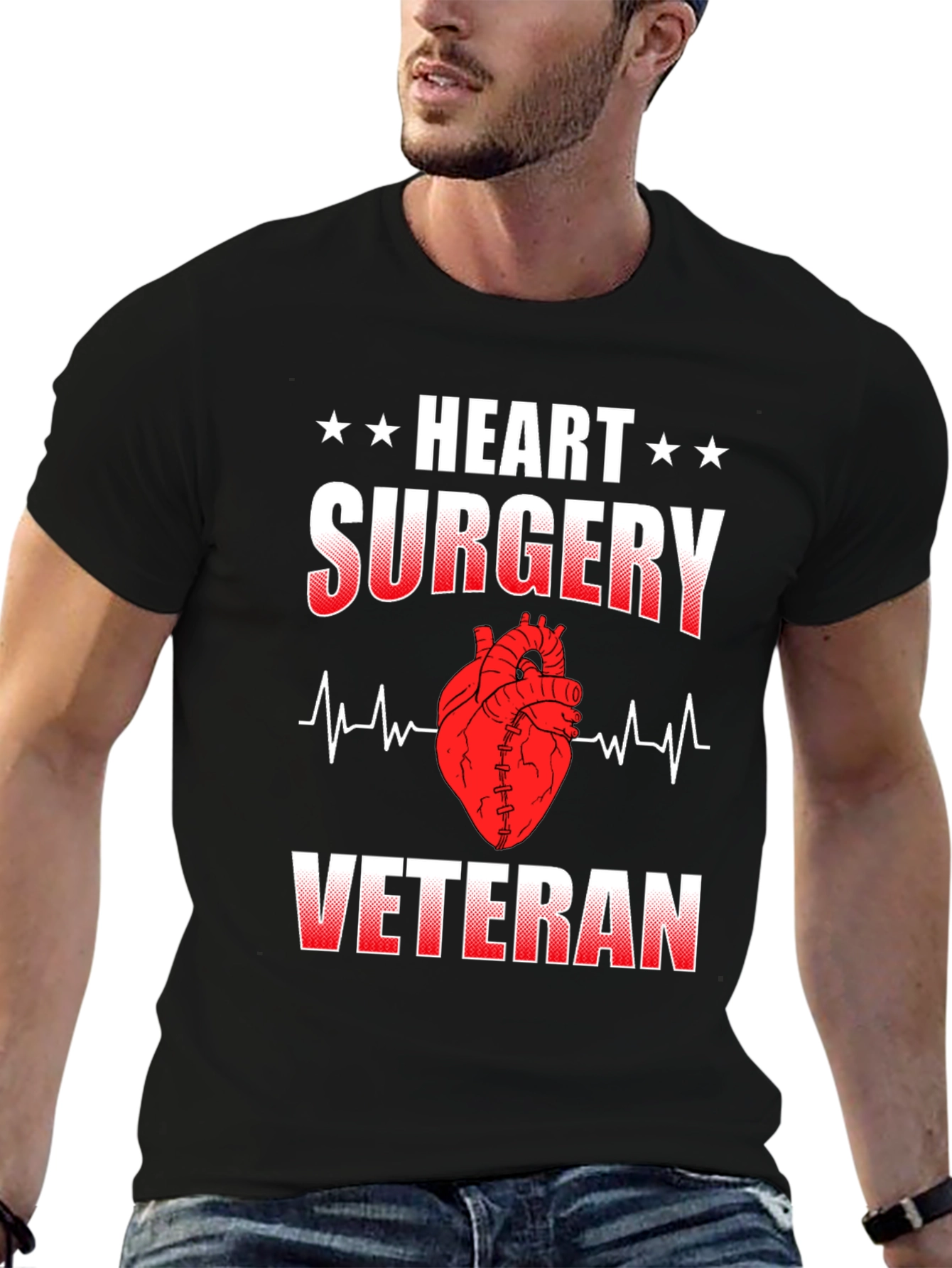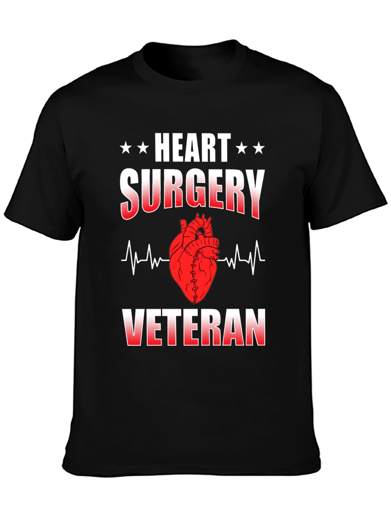Esta camiseta negra presenta un diseño audaz y llamativo. En el centro, se destaca un corazón rojo estilizado, flanqueado por un electrocardiograma blanco, representando la especialidad médica de cirugía cardíaca. La inscripción "HEART SURGERY" y "VETERAN" están impresas en letras blancas con borde rojo, con estrellas blancas que adornan la palabra "HEART". Esta camiseta es perfecta para cualquier persona que haya pasado por una cirugía cardíaca, para mostrar apoyo a un ser querido o para profesionales de la salud en el campo. Es una prenda cómoda y con estilo, ideal para usar a diario y mostrar orgullo y valentía.