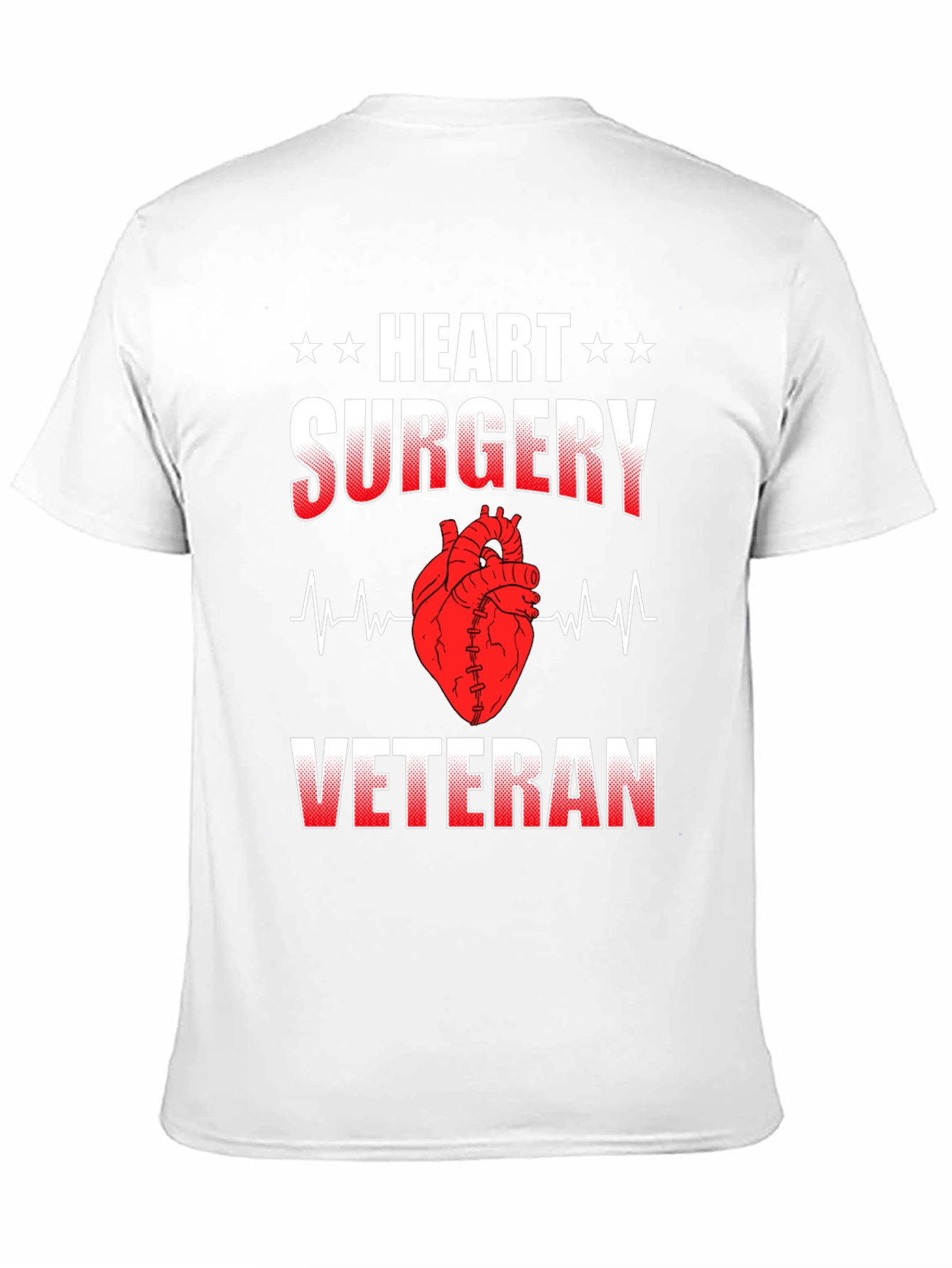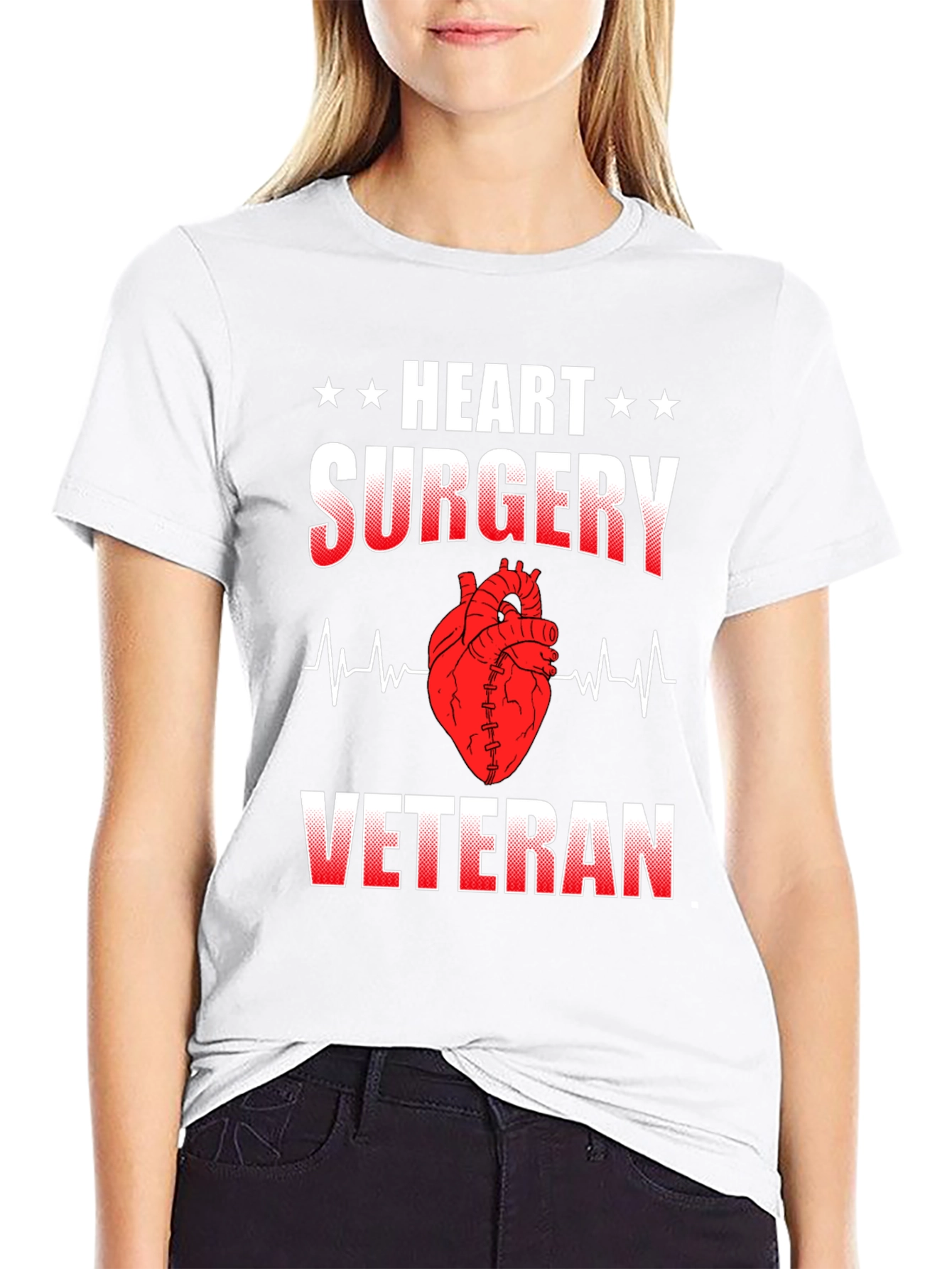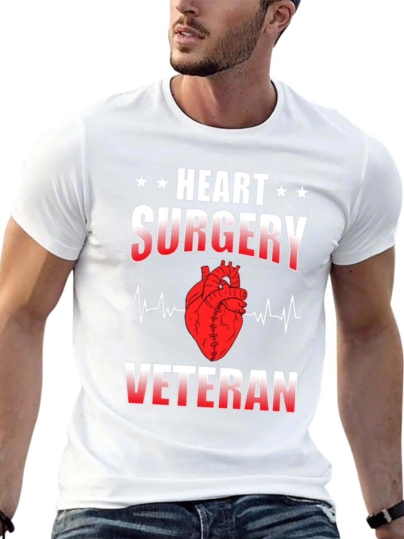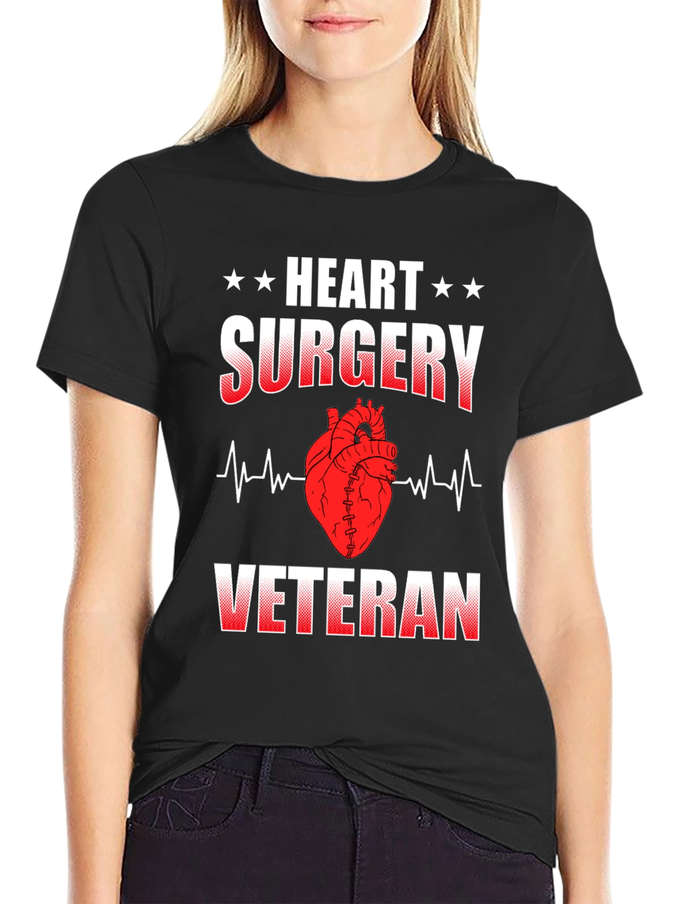 Esta camiseta negra presenta un diseño audaz y llamativo. En el centro, se destaca un corazón rojo estilizado, flanqueado por un electrocardiograma blanco, representando la especialidad médica de cirugía cardíaca. La inscripción "HEART SURGERY" y "VETERAN" están impresas en letras blancas con borde rojo, con estrellas blancas que adornan la palabra "HEART". Esta camiseta es perfecta para cualquier persona que haya pasado por una cirugía cardíaca, para mostrar apoyo a un ser querido o para profesionales de la salud en el campo. Es una prenda cómoda y con estilo, ideal para usar a diario y mostrar orgullo y valentía.