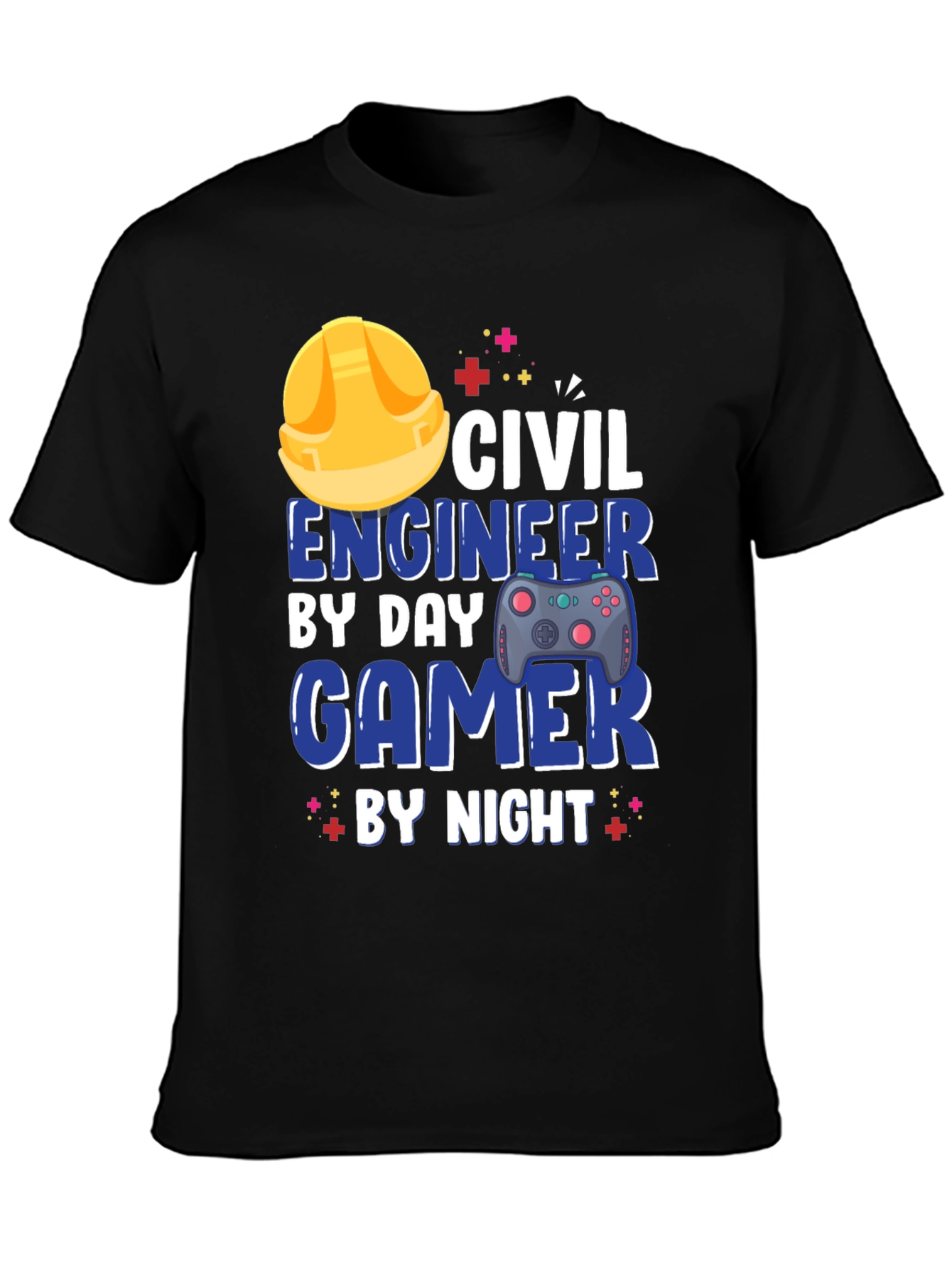 ¡Muestra tu doble pasión con esta camiseta para hombre! De color negro, esta prenda presenta un divertido diseño que combina la ingeniería civil con el mundo de los videojuegos. En la parte frontal, se destaca un casco de ingeniero junto con la inscripción "Civil Engineer By Day, Gamer By Night". Ideal para ingenieros que disfrutan jugando en su tiempo libre, esta camiseta es perfecta para usar en reuniones informales, eventos de videojuegos o simplemente para relajarse en casa. Su diseño único y llamativo te asegura destacar entre la multitud. ¡Consigue la tuya y presume de tus aficiones!