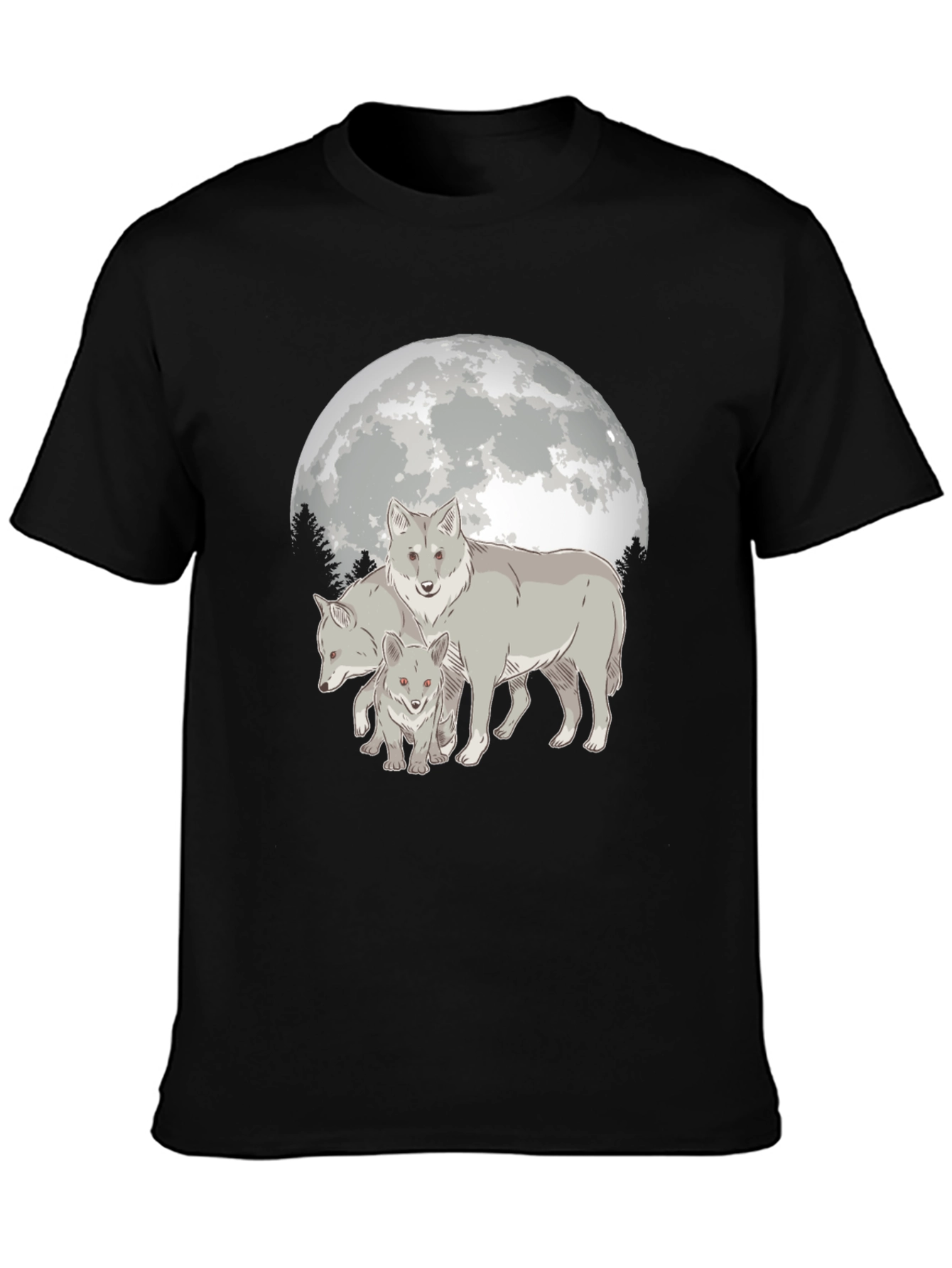 Camiseta Hombre Diseño Lobo Luna Llena - Estilo Casual