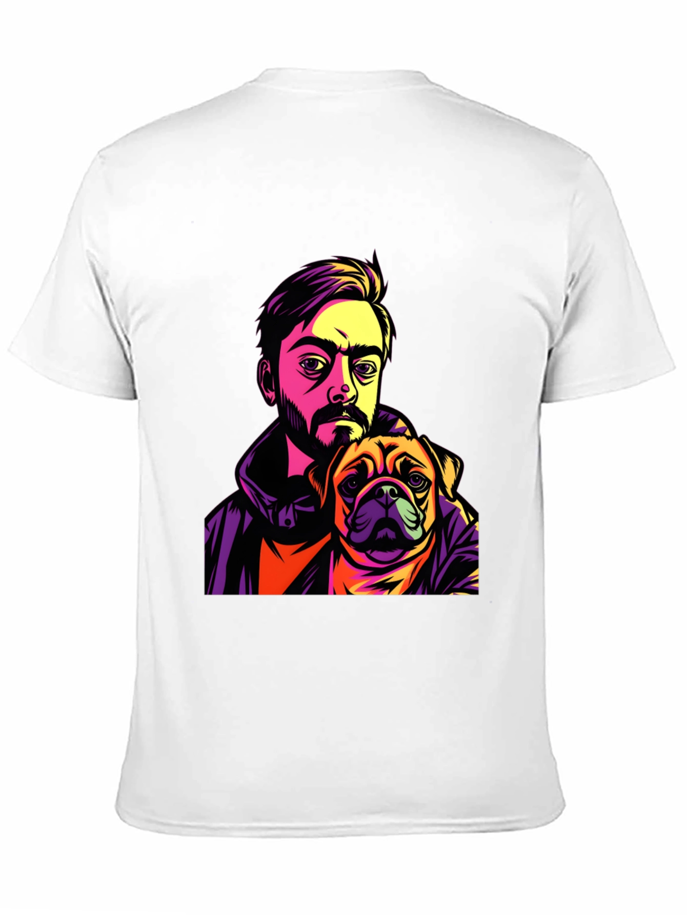 Luce un estilo único con esta camiseta negra para hombre. Presenta un llamativo diseño que combina la figura de un hombre con un adorable pug, ambos en un estilo artístico vibrante con colores neón y contrastantes. Perfecta para los amantes de los animales y el arte moderno. Ideal para un look casual y cómodo, esta camiseta destacará tu personalidad y sentido del humor. Combínala con jeans o pantalones casuales para un atuendo relajado pero lleno de estilo. ¡Atrévete a llevar este diseño original y marca la diferencia!