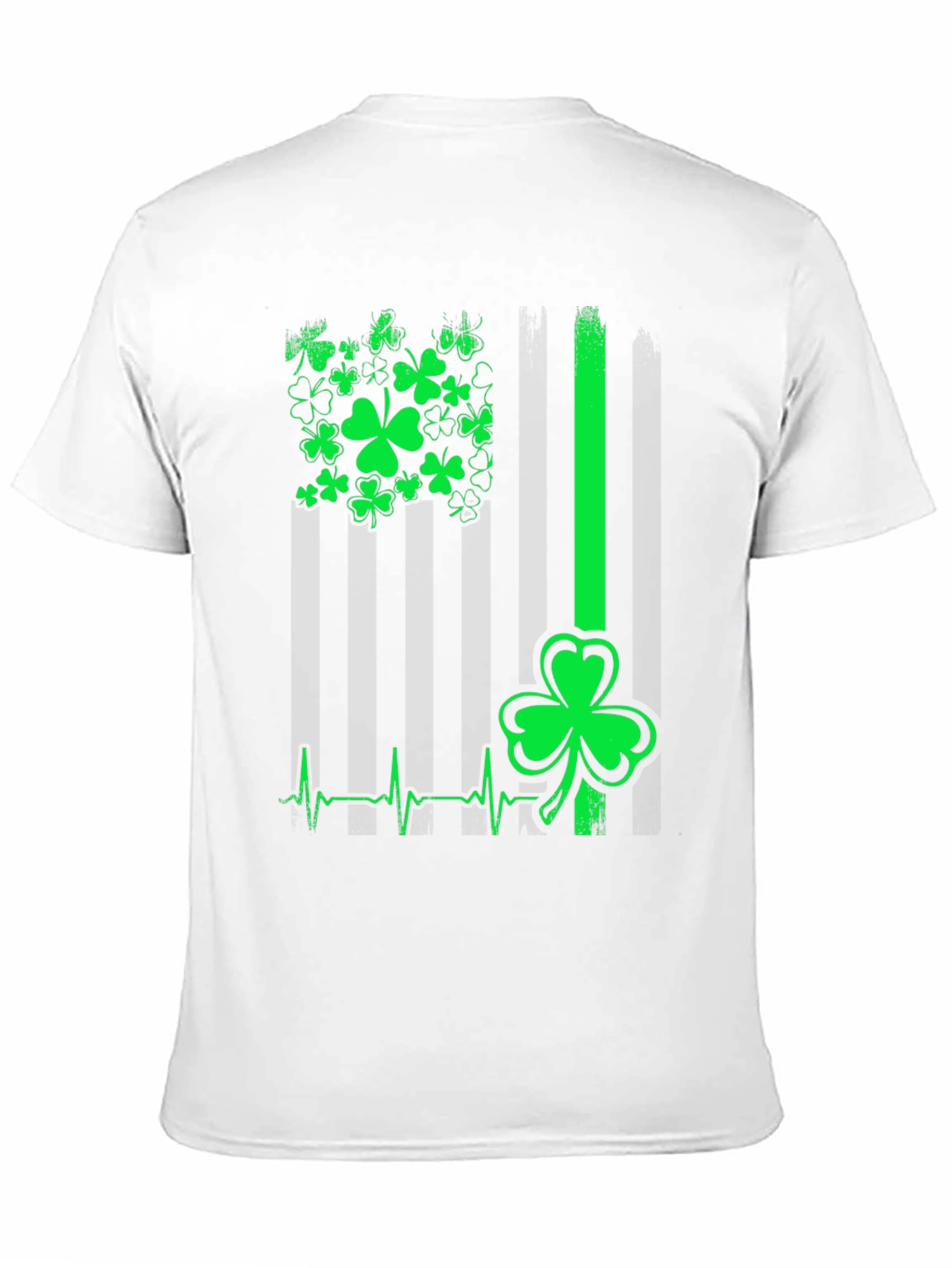 Celebra San Patricio con esta camiseta de hombre en color negro. Presenta un diseño único con un patrón de tréboles verdes que simula la bandera americana, acompañado de una línea de latidos que culmina en un trébol grande. Ideal para lucir en el Día de San Patricio, fiestas temáticas o para expresar tu espíritu festivo en cualquier ocasión. El diseño llamativo y original garantiza que destacarás entre la multitud. Su corte clásico asegura comodidad y un ajuste favorecedor. ¡Consigue la tuya y únete a la celebración con estilo!