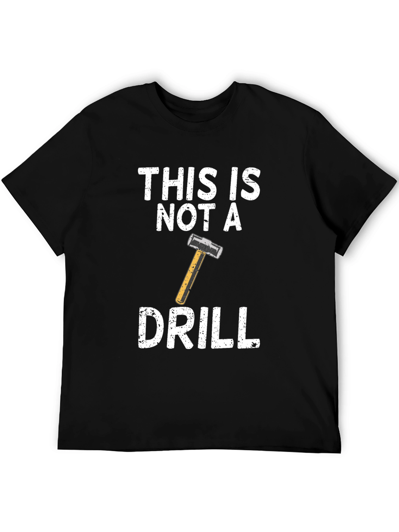 Muestra tu sentido del humor con esta original camiseta negra. Presenta una llamativa frase "This is not a..." sobre una ilustración de un martillo, seguido de la palabra "Drill". El diseño en blanco destaca sobre el fondo oscuro, creando un contraste atractivo. Perfecta para los amantes del bricolaje, los manitas o para aquellos que disfrutan con un toque de ironía en su vestimenta. Confeccionada en un material que parece ser suave y cómodo, esta camiseta de manga corta es ideal para el uso diario, ya sea para trabajar en proyectos en casa o para una salida informal. ¡Hazte con ella y sorprende a todos con tu estilo único!