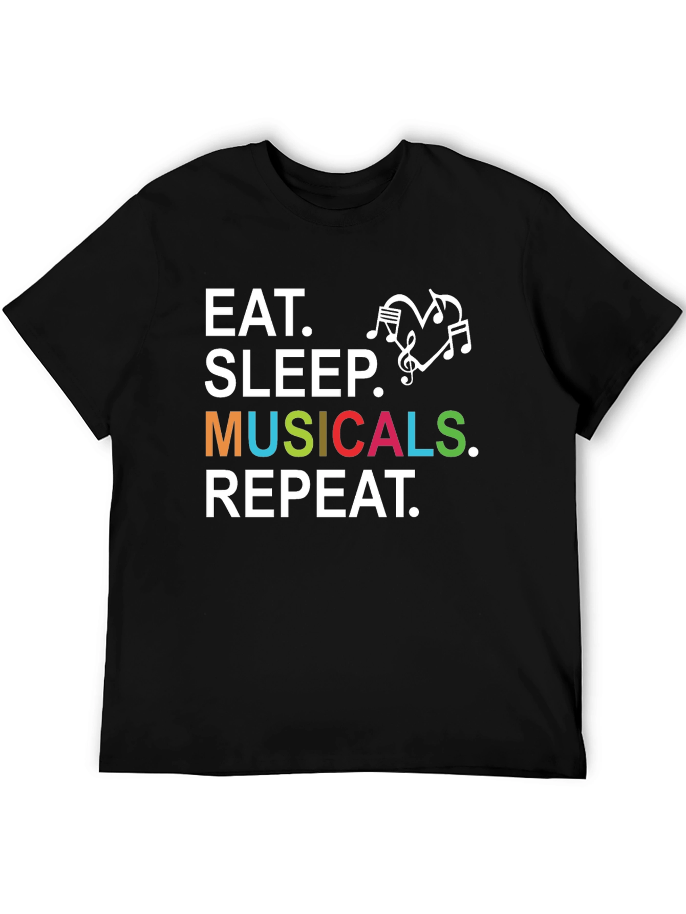¡Para los amantes de los musicales! Esta camiseta negra presenta un diseño llamativo con las palabras "Come, Duerme, Musicales, Repite". La palabra "Musicales" destaca en un degradado de colores vibrantes que va del naranja al rosa. Un motivo de notas musicales formando un corazón añade un toque creativo. Confeccionada en un tejido suave y cómodo, esta camiseta de manga corta es perfecta para el uso diario, eventos musicales, ensayos o simplemente para expresar tu pasión por el teatro musical. ¡Luce tu amor por los musicales con esta camiseta única y original!