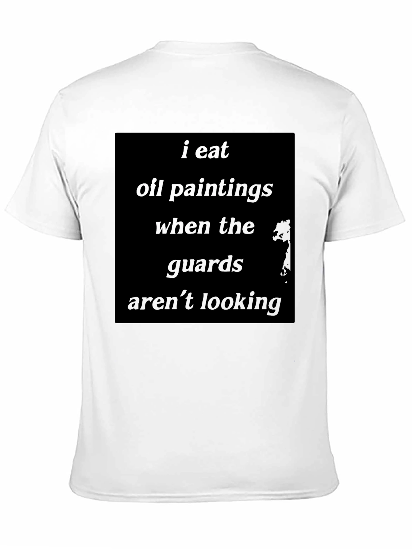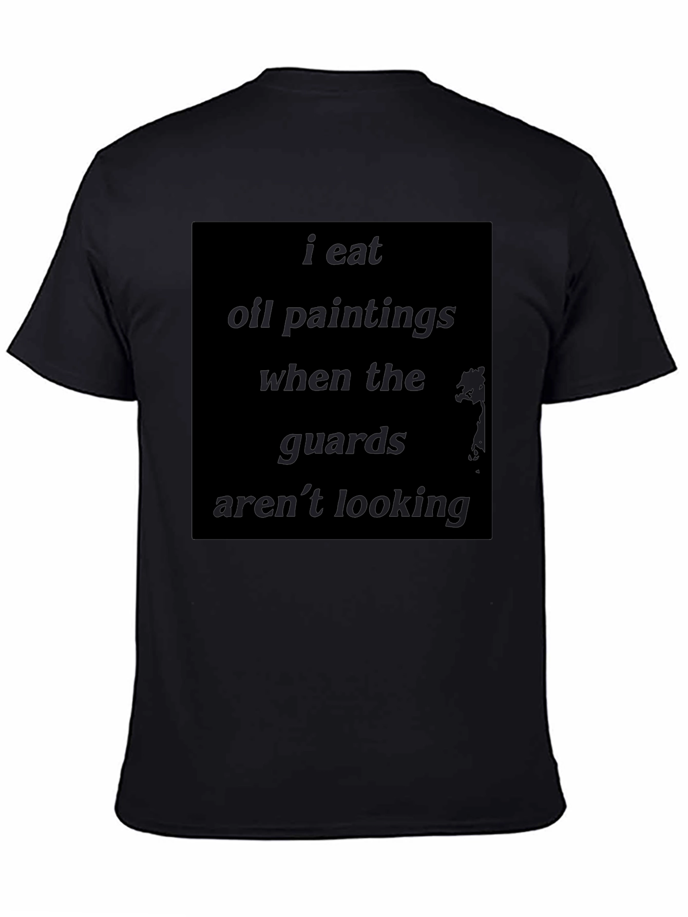 Esta camiseta negra presenta un diseño audaz y divertido para aquellos con un sentido del humor único. Confeccionada en un material suave y cómodo, ideal para el uso diario. El mensaje "Como pinturas al óleo cuando los guardias no están mirando" está impreso en el pecho, agregando un toque irreverente a tu estilo. Perfecta para expresar tu personalidad y sorprender a todos a tu alrededor. Llévala en reuniones informales, salidas con amigos o simplemente para relajarte en casa. ¡Esta camiseta es una declaración de intenciones!