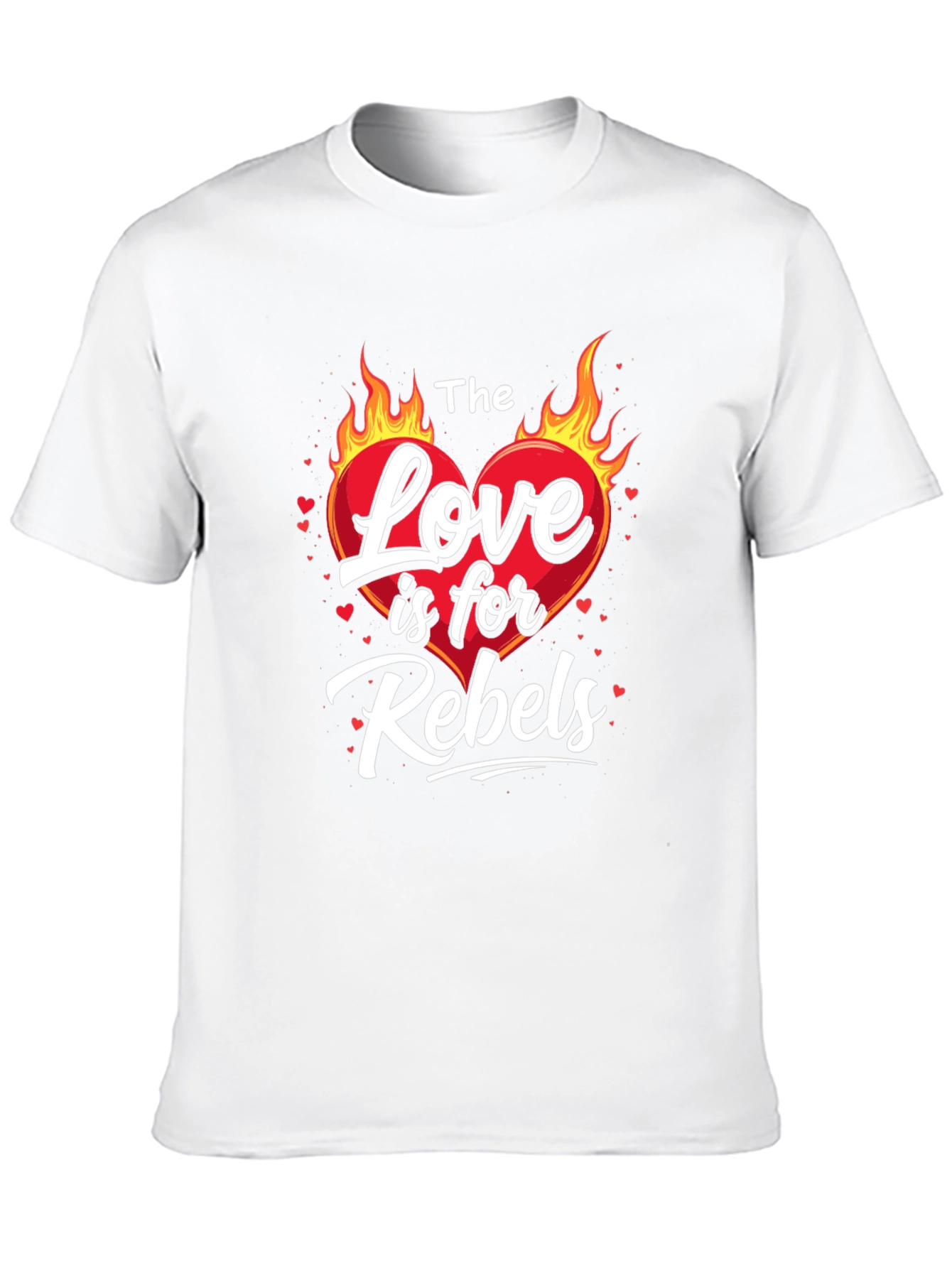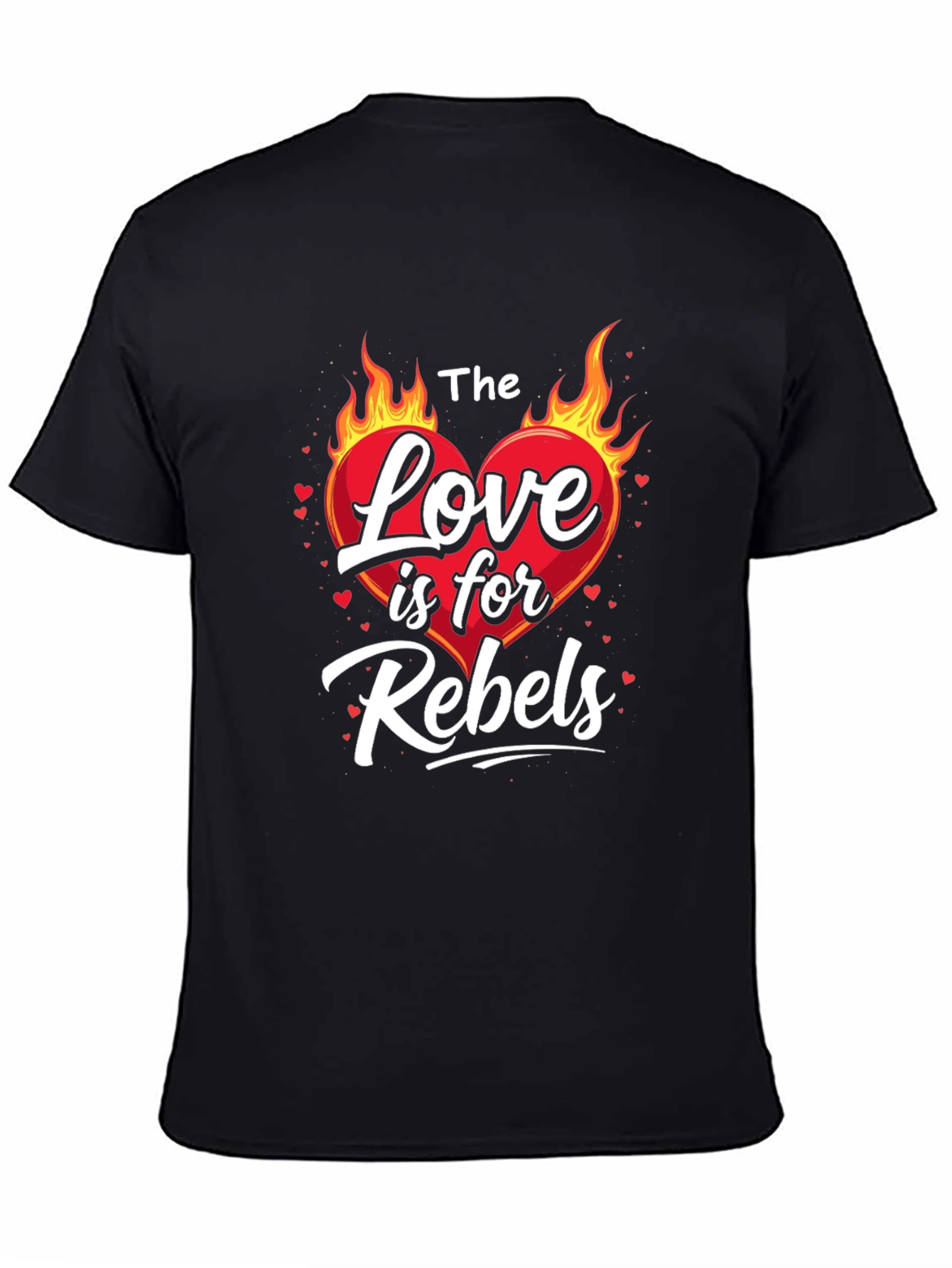 Luce esta llamativa camiseta negra con un diseño audaz y romántico. Presenta un corazón rojo en llamas, rodeado de pequeños corazones, con la frase "The Love is for Rebels". Ideal para expresar tu espíritu rebelde y tu pasión por el amor. Hecha de un material suave y cómodo, perfecta para uso diario o para destacar en eventos especiales. Combínala con jeans o pantalones casuales para un look moderno y original. ¡Muestra tu lado más rebelde con esta camiseta única y llena de estilo!