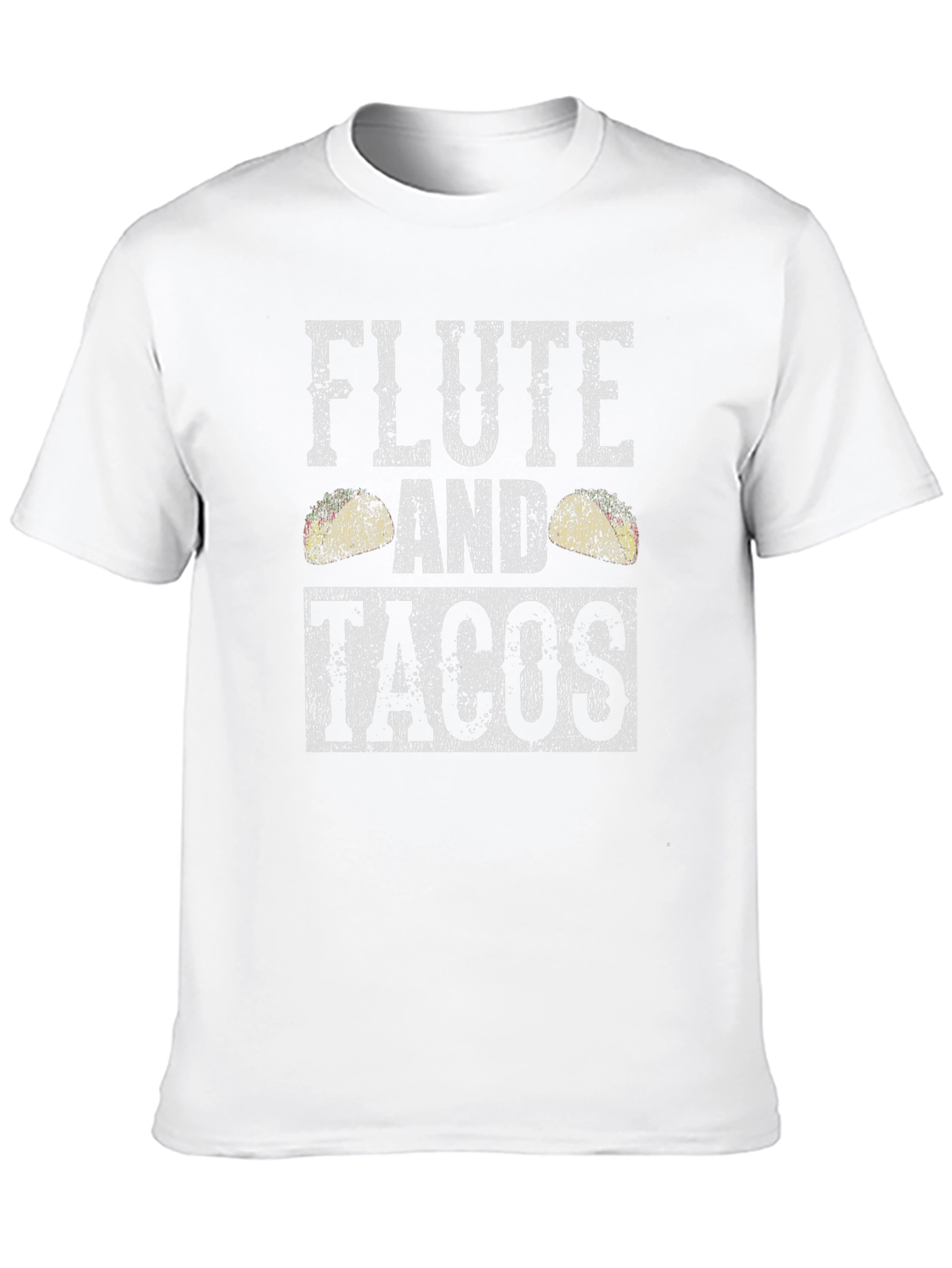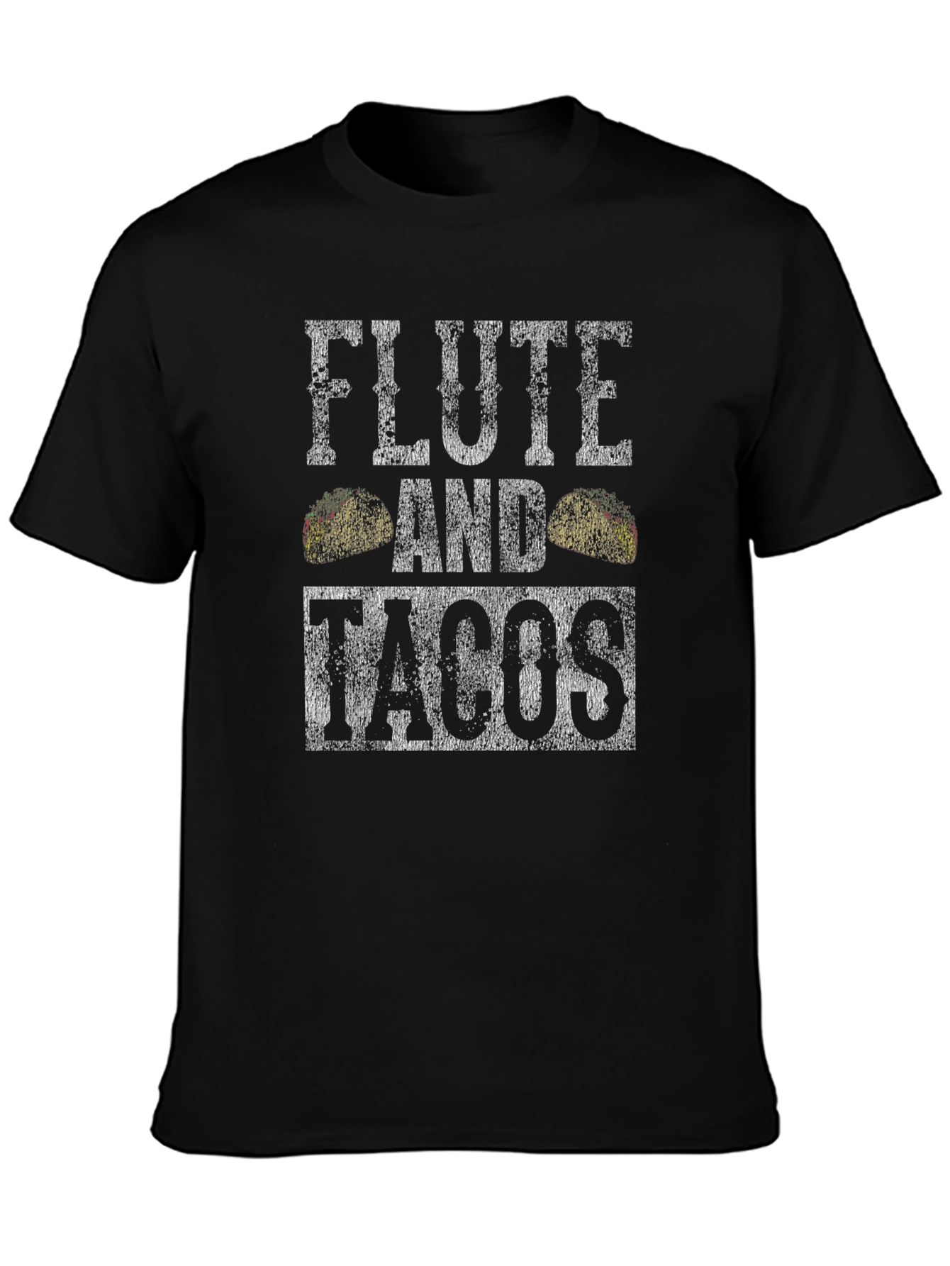Luce tu amor por la música y la comida con esta llamativa camiseta negra. Presenta un diseño divertido y original con las palabras "Flauta y Tacos" en letras desgastadas de estilo vintage, separadas por imágenes realistas de tacos. Perfecta para músicos, amantes de la comida mexicana o cualquiera que disfrute de un atuendo único y con personalidad. Ideal para uso casual, festivales, conciertos o simplemente para destacar entre la multitud. Fabricada con materiales suaves y cómodos, esta camiseta se convertirá rápidamente en una de tus favoritas. ¡Muestra tu buen humor y estilo con esta prenda imprescindible!