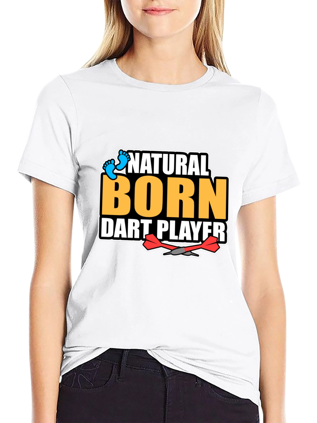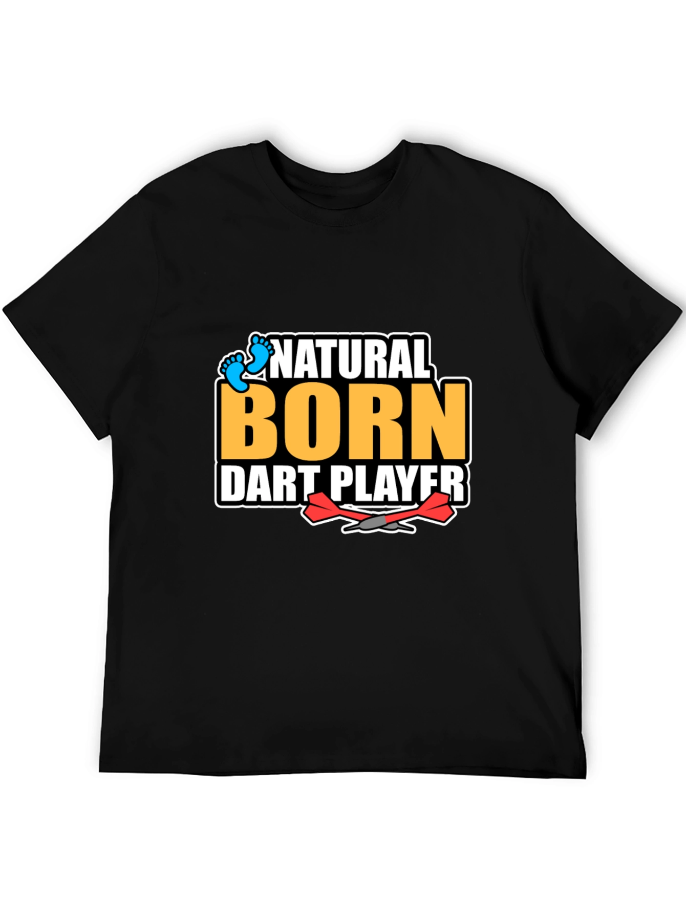 ¡Presume tu talento natural con esta camiseta negra de manga corta! Ideal para los amantes de los dardos. El diseño llamativo presenta la frase "Natural Born Dart Player" en letras contrastantes sobre un fondo blanco, junto con la imagen de dardos cruzados en color rojo. Perfecta para lucir en campeonatos, noches de juego con amigos o simplemente para expresar tu pasión por este deporte. Fabricada con materiales suaves y cómodos, esta camiseta te brindará un ajuste perfecto y una gran durabilidad. ¡Demuestra tu espíritu competitivo con estilo!