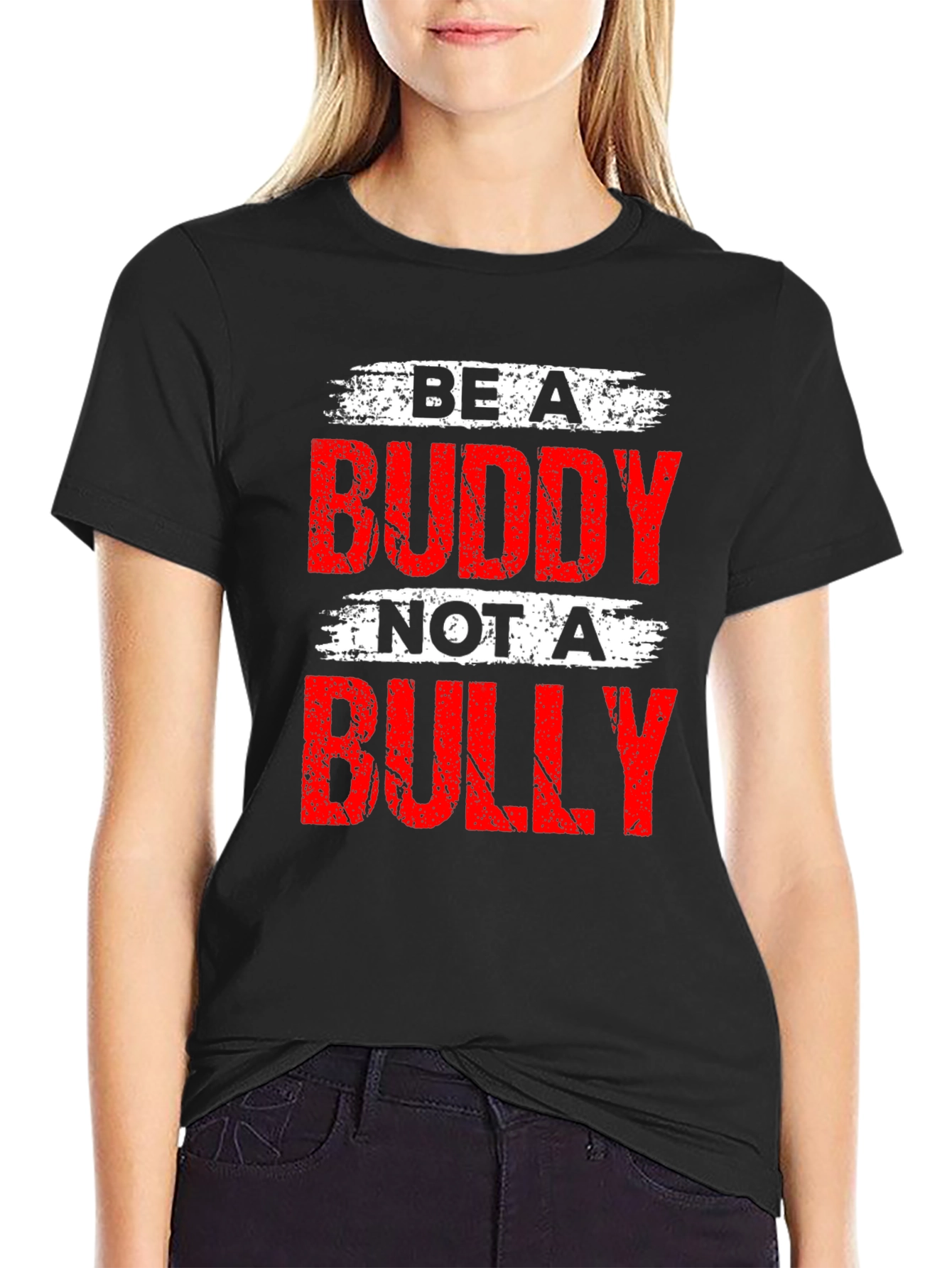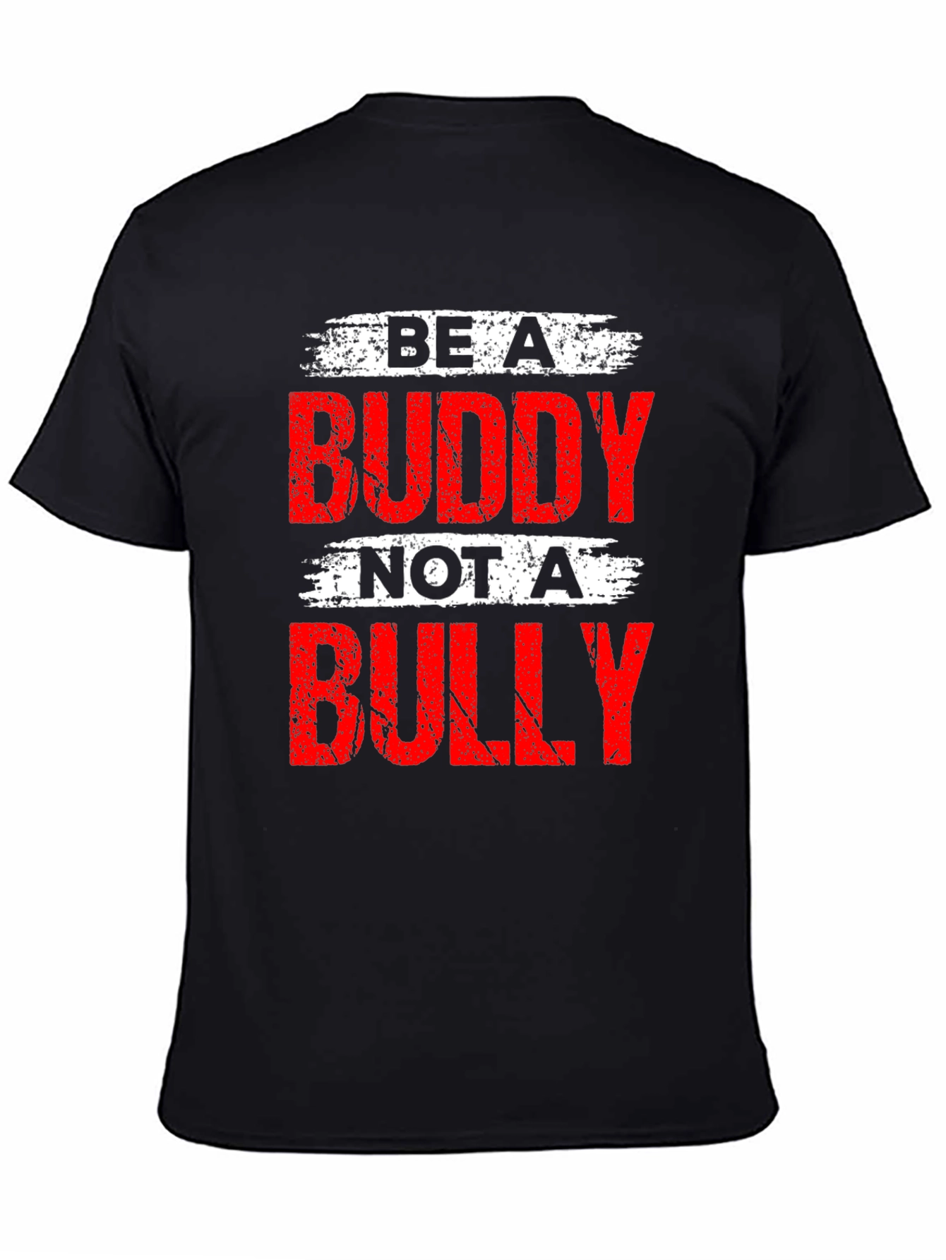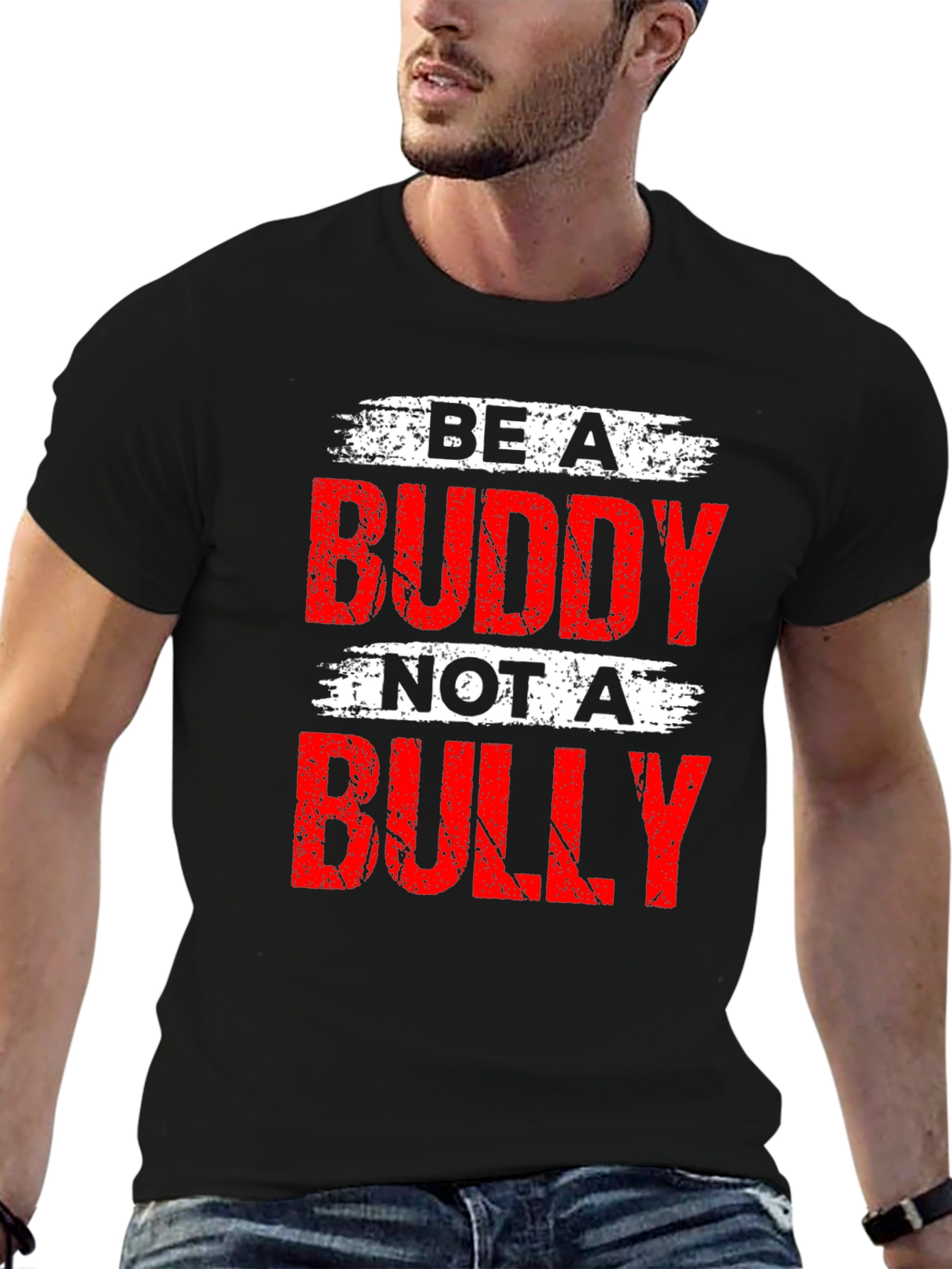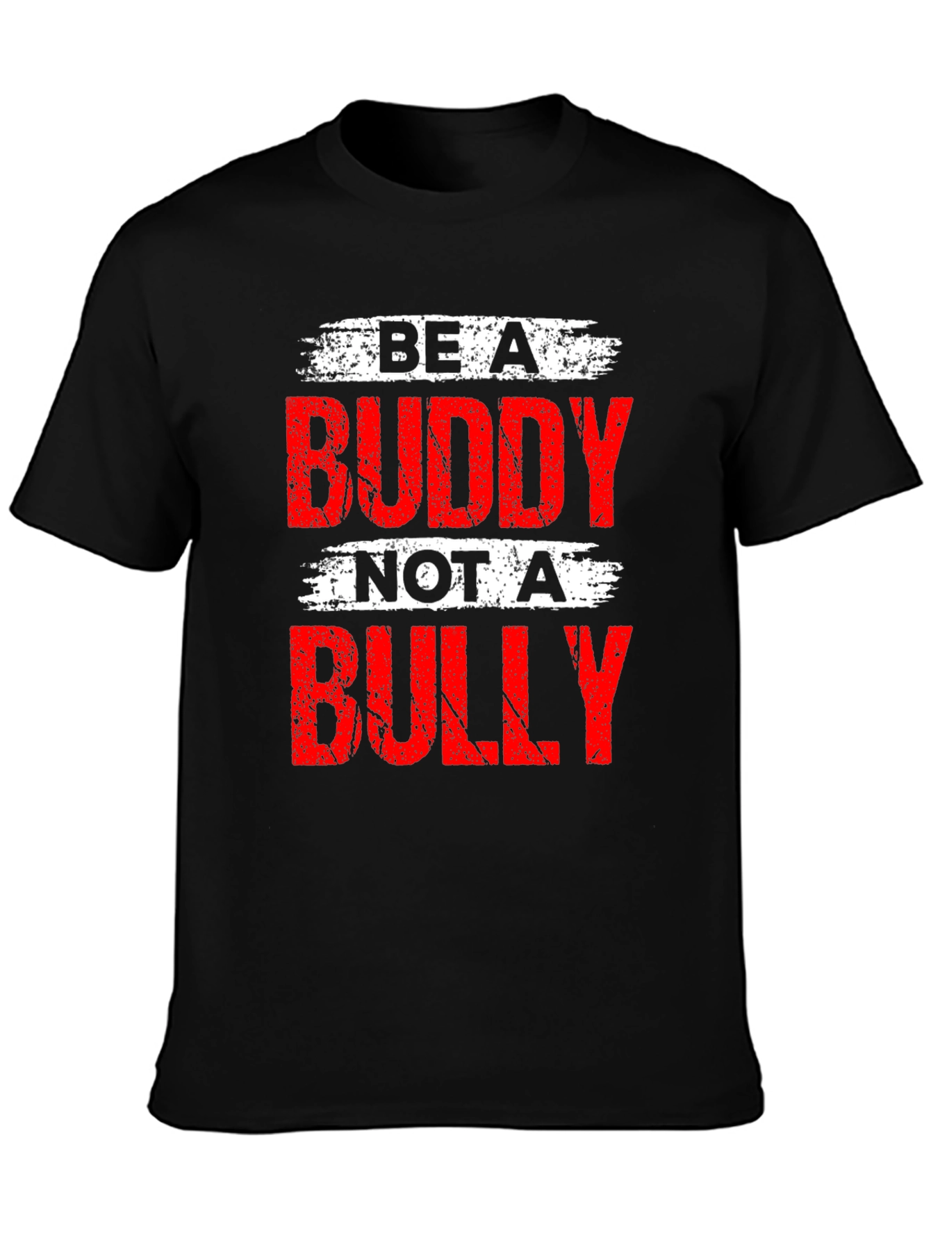 Luce un estilo con conciencia con esta camiseta negra de corte clásico. El diseño llamativo muestra el mensaje "Sé un Compañero, No un Matón" en letras rojas contrastantes con un toque grunge. Perfecta para enviar un mensaje positivo, esta camiseta es ideal para el uso diario, eventos comunitarios o simplemente para expresar tu postura contra el acoso escolar. Fabricada con materiales suaves y cómodos, esta camiseta ofrece un ajuste relajado y una durabilidad excepcional. Combínala con jeans, pantalones cortos o una falda para un look casual pero impactante. ¡Marca la diferencia con esta declaración de moda!