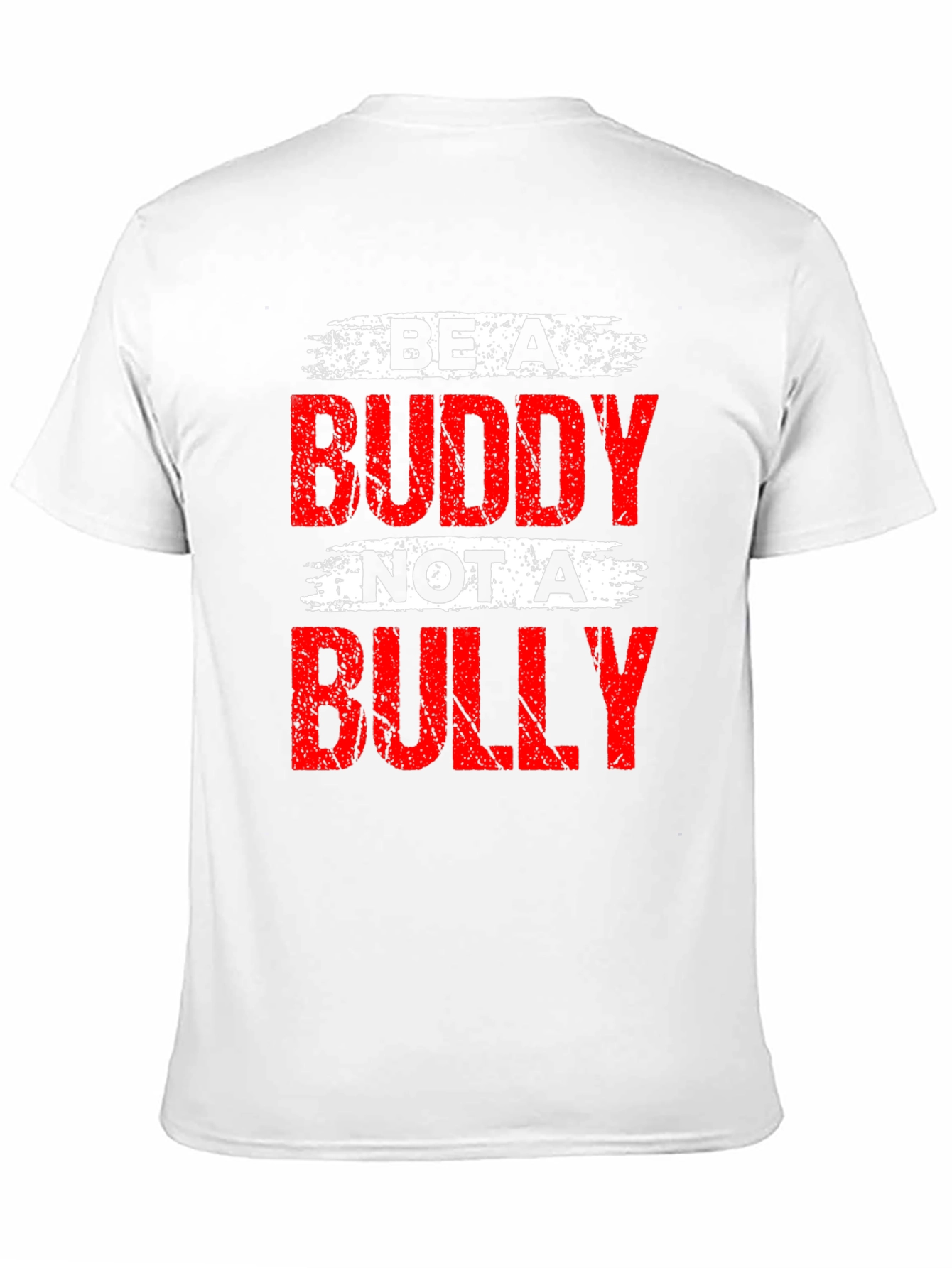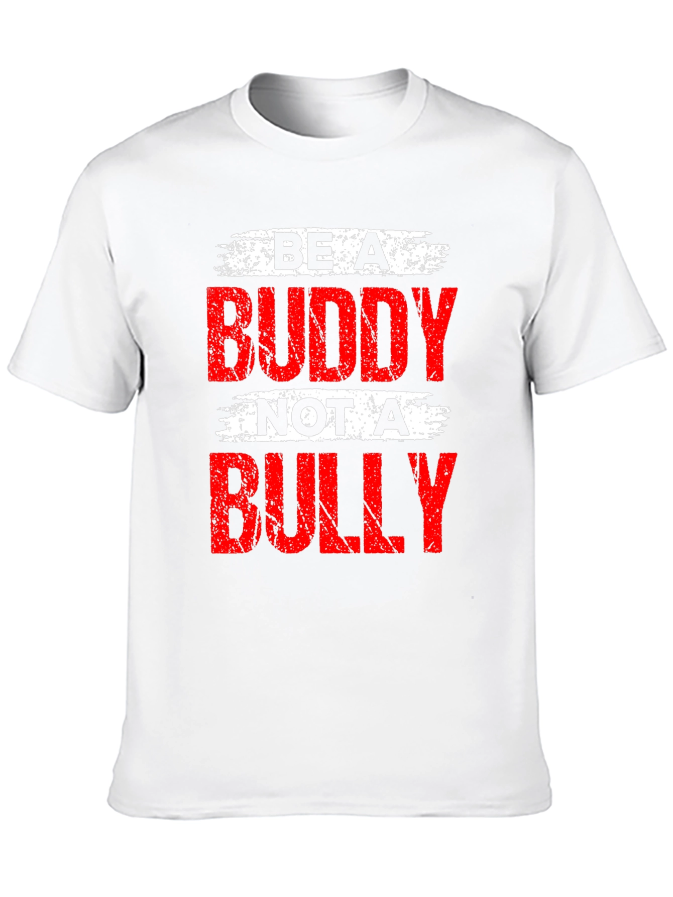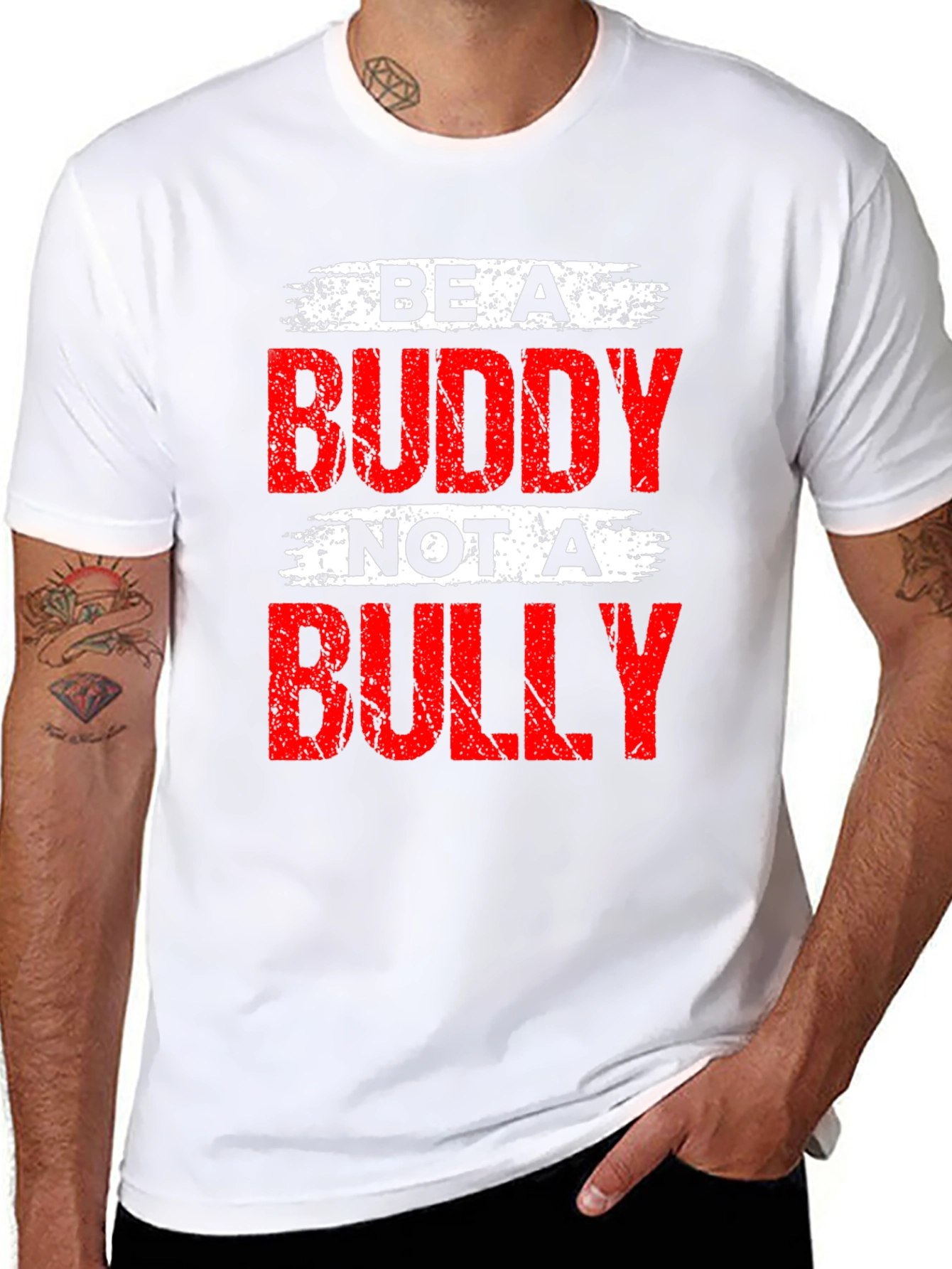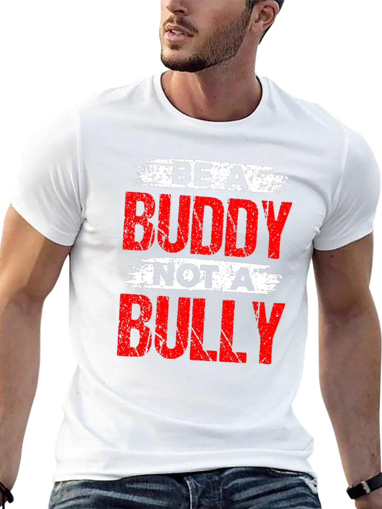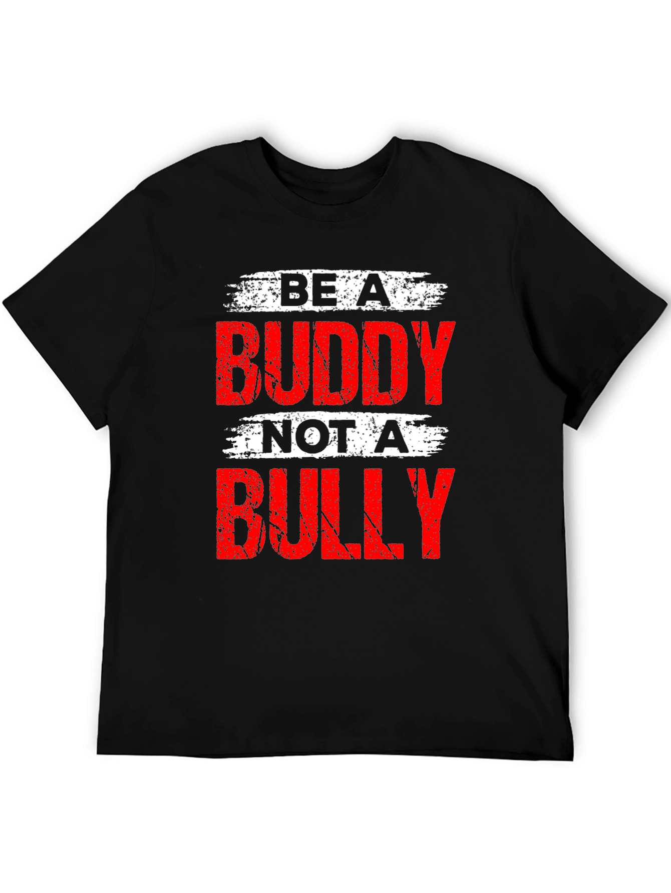 Luce un estilo con conciencia con esta camiseta negra de corte clásico. El diseño llamativo muestra el mensaje "Sé un Compañero, No un Matón" en letras rojas contrastantes con un toque grunge. Perfecta para enviar un mensaje positivo, esta camiseta es ideal para el uso diario, eventos comunitarios o simplemente para expresar tu postura contra el acoso escolar. Fabricada con materiales suaves y cómodos, esta camiseta ofrece un ajuste relajado y una durabilidad excepcional. Combínala con jeans, pantalones cortos o una falda para un look casual pero impactante. ¡Marca la diferencia con esta declaración de moda!