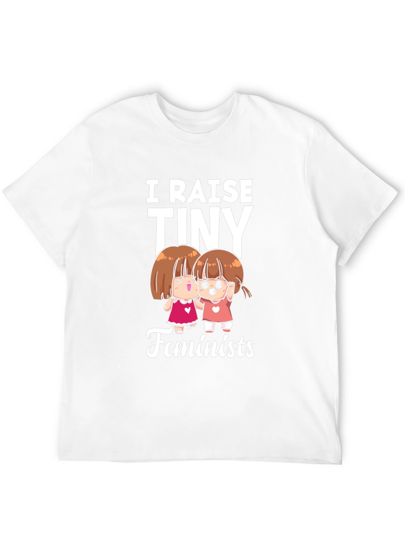 Esta camiseta negra de manga corta presenta un diseño divertido y empoderador. En la parte frontal, se muestra la frase "I Raise Tiny Feminists" (Yo Crío Pequeñas Feministas) en letras blancas llamativas, acompañada de ilustraciones de dos niñas adorables. Confeccionada en un material suave y cómodo, esta camiseta es perfecta para el uso diario. Ideal para padres y madres orgullosos que apoyan la igualdad de género desde la infancia. ¡Muestra tu apoyo al feminismo con esta prenda única y significativa!