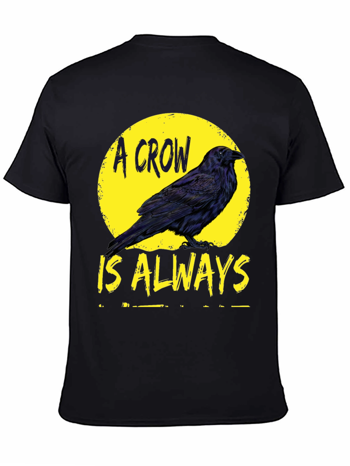 Muestra tu estilo único con esta camiseta negra de manga corta. Presenta un llamativo diseño con un cuervo detallado sobre un fondo circular amarillo, acompañado del texto "A CROW IS ALWAYS". Ideal para los amantes de las aves o para aquellos que buscan una prenda con un toque artístico y misterioso. Perfecta para uso casual, esta camiseta combina comodidad y estilo, permitiéndote expresar tu personalidad dondequiera que vayas. Fabricada con materiales de alta calidad para asegurar durabilidad y confort durante todo el día.