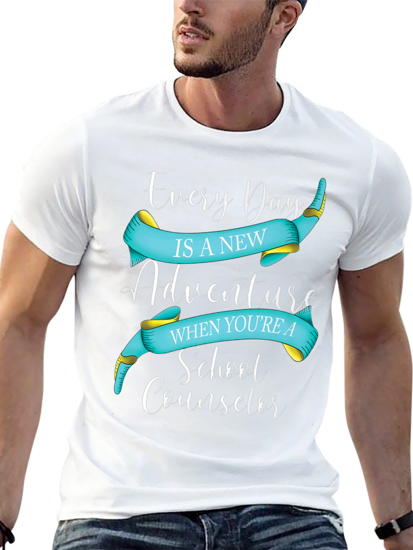 Muestra tu espíritu como consejero escolar con esta camiseta negra de diseño atractivo. La frase 'Every Day is a New Adventure When You're a School Counselor' (Cada día es una nueva aventura cuando eres consejero escolar) está impresa en una fuente elegante y adornada con cintas decorativas en tonos turquesa y amarillo. Esta camiseta de manga corta parece ser de un tejido suave y cómodo, ideal para llevar durante la jornada escolar o en momentos de relax. Perfecta para regalar a ese consejero escolar especial en tu vida o para lucir con orgullo tu propia profesión. Destaca y comparte tu pasión por la orientación escolar con esta prenda única y llamativa.