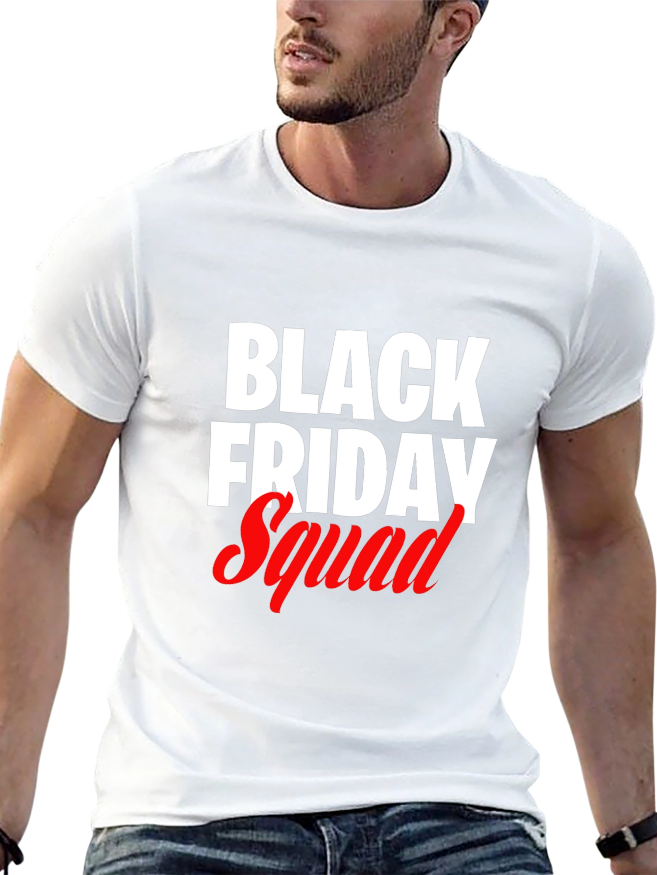 Prepárate para el Black Friday con esta camiseta negra de manga corta. Con un diseño llamativo y moderno, presenta las palabras "Black Friday" en letras blancas en negrita, destacadas por la palabra "Squad" en una vibrante fuente roja cursiva. Ideal para llevar con orgullo durante las compras del Black Friday o para cualquier ocasión informal. Confeccionada con materiales suaves y cómodos, esta camiseta ofrece un ajuste relajado y agradable para todo el día. Muestra tu espíritu de equipo y únete a la "Black Friday Squad" con esta prenda imprescindible. Perfecta para regalar a amigos y familiares amantes de las compras.