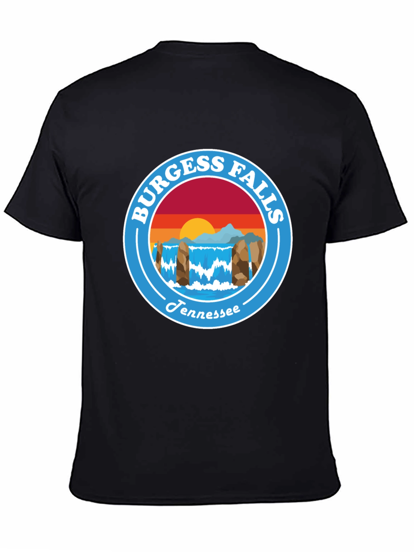 Luce esta elegante camiseta negra con un diseño circular vibrante de Burgess Falls, Tennessee. La ilustración captura la belleza escénica de las cataratas al atardecer, con colores cálidos y una tipografía atractiva. Perfecta para los amantes de la naturaleza y los viajeros, esta camiseta de algodón suave te ofrece comodidad y estilo. Ideal para uso diario, eventos al aire libre o como un recuerdo especial de tu visita a Tennessee. Muestra tu pasión por los paisajes icónicos con esta prenda única y llamativa. Un excelente regalo para cualquier ocasión.