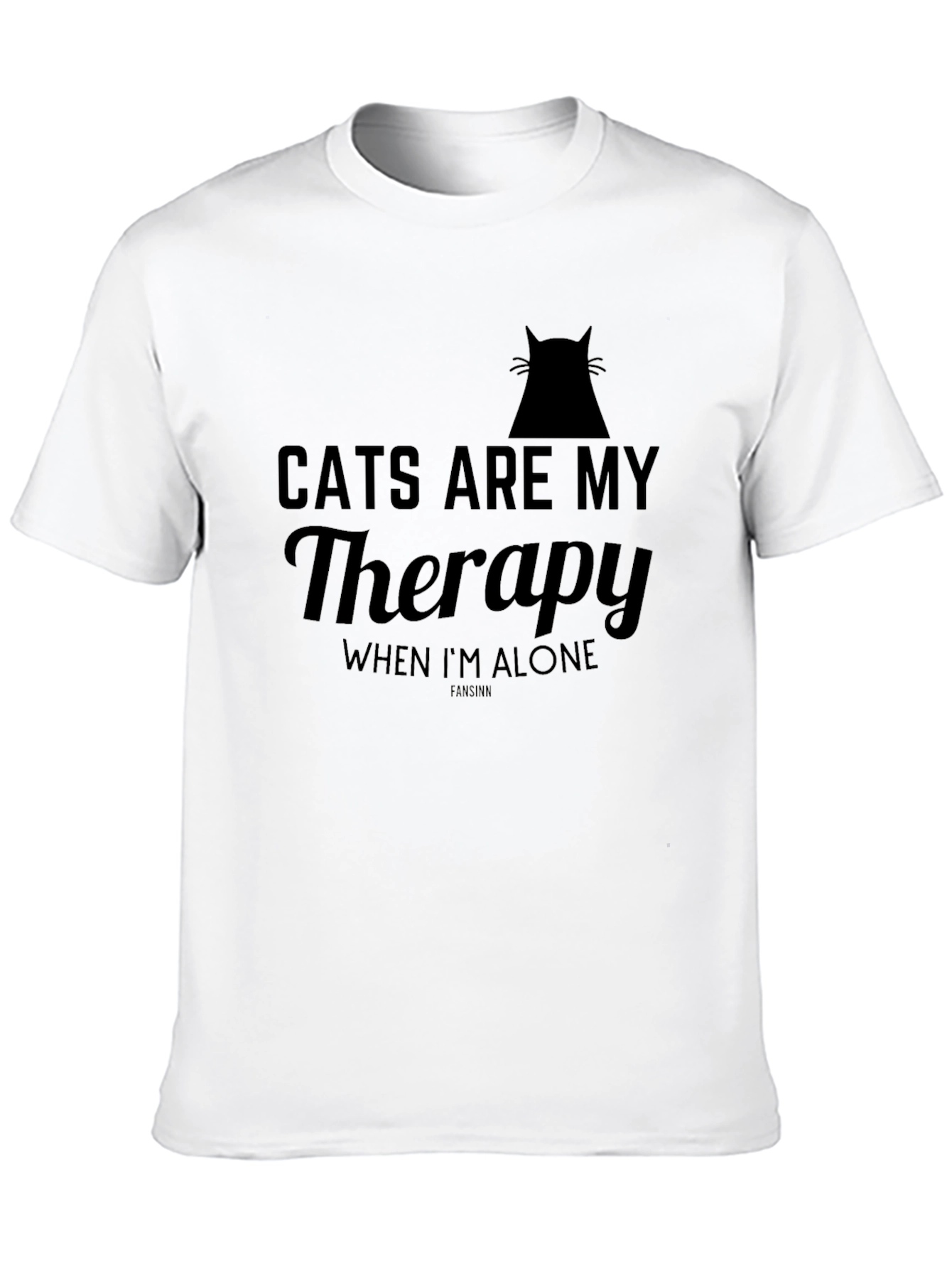 Muestra tu amor por los gatos con esta elegante camiseta negra. Presenta un diseño único con la frase "Cats Are My Therapy" y la silueta de un gato, ideal para cualquier amante de los felinos. Fabricada en un tejido suave y cómodo, esta camiseta de manga corta es perfecta para usar a diario, ya sea en casa, de paseo o para una salida informal con amigos. Su diseño sencillo y moderno la convierte en una prenda versátil que combina fácilmente con jeans, pantalones cortos o faldas. Expresa tu pasión por los gatos con estilo y comodidad.