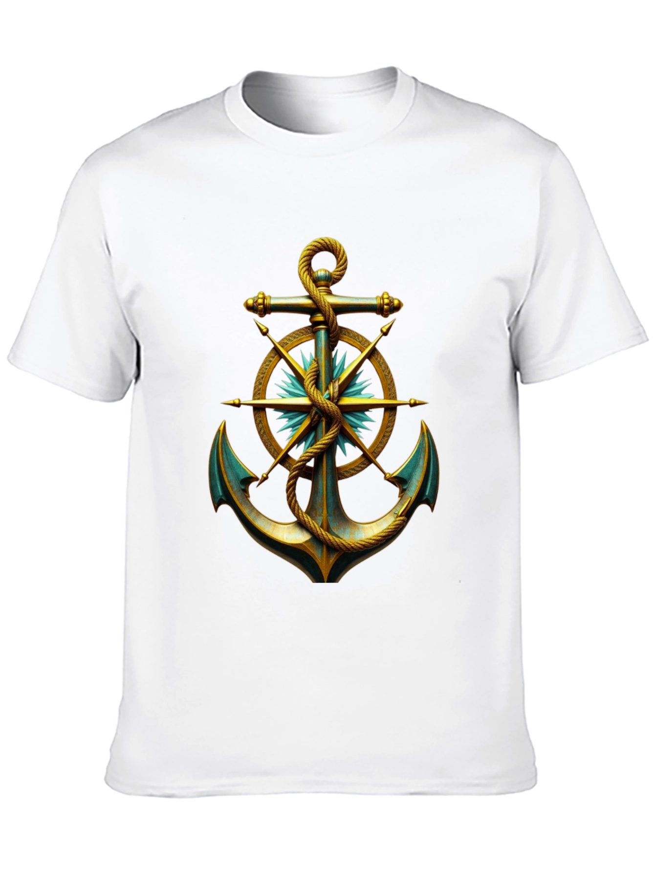 Luce un estilo único con esta llamativa camiseta negra. Presenta un diseño impresionante de un ancla náutica en tonos dorados y azules. El ancla, detalladamente elaborada, está entrelazada con una cuerda dorada, añadiendo un toque distintivo. Ideal para los amantes del mar y la moda, esta camiseta combina comodidad y estilo. Perfecta para un look casual, salidas con amigos o simplemente para destacar tu personalidad aventurera. Fabricada con materiales de alta calidad para asegurar durabilidad y confort, esta camiseta se convertirá en un básico imprescindible en tu guardarropa. ¡Atrae todas las miradas con esta prenda original y moderna!