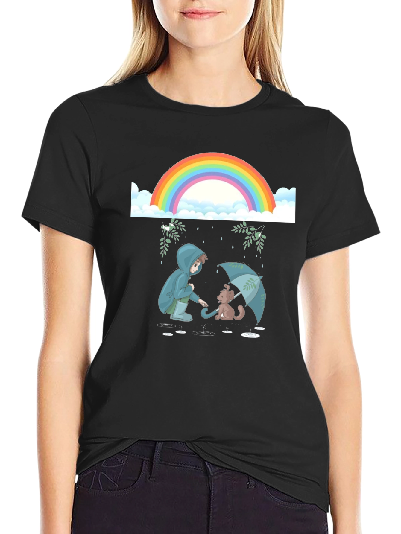 Camiseta Negra con Diseño de Arcoíris y Lluvia