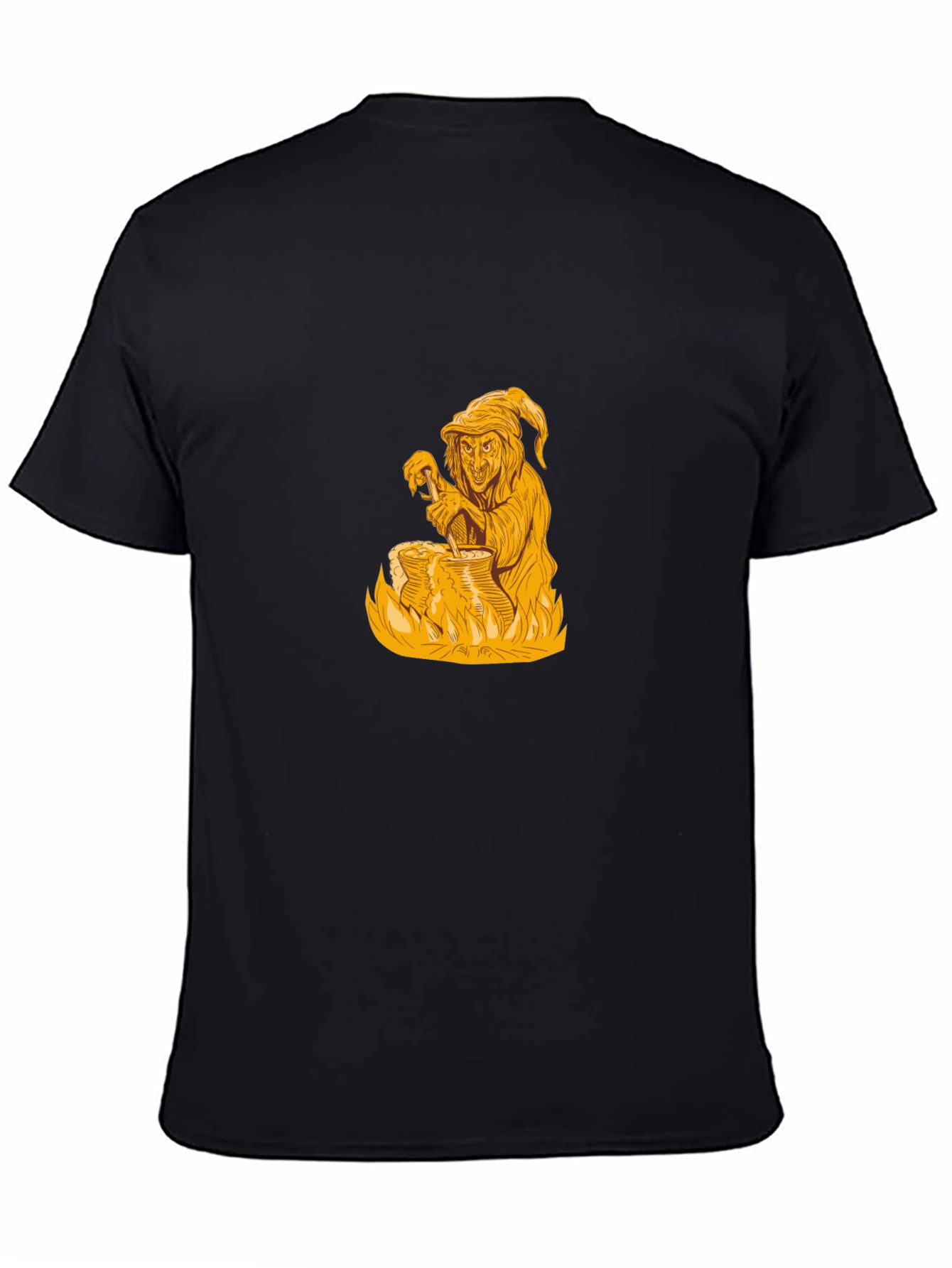 Luce un estilo misterioso y original con esta camiseta negra de manga corta. Presenta un llamativo diseño dorado de una bruja removiendo una poción en su caldero, rodeado de llamas. Perfecta para los amantes del ocultismo, Halloween, o simplemente para aquellos que buscan una prenda única. Fabricada con materiales de alta calidad para garantizar comodidad y durabilidad. Ideal para combinar con tus jeans o pantalones favoritos y expresar tu personalidad. Una prenda imprescindible para tu guardarropa. ¡Atrévete a destacar con esta camiseta con un toque de magia!