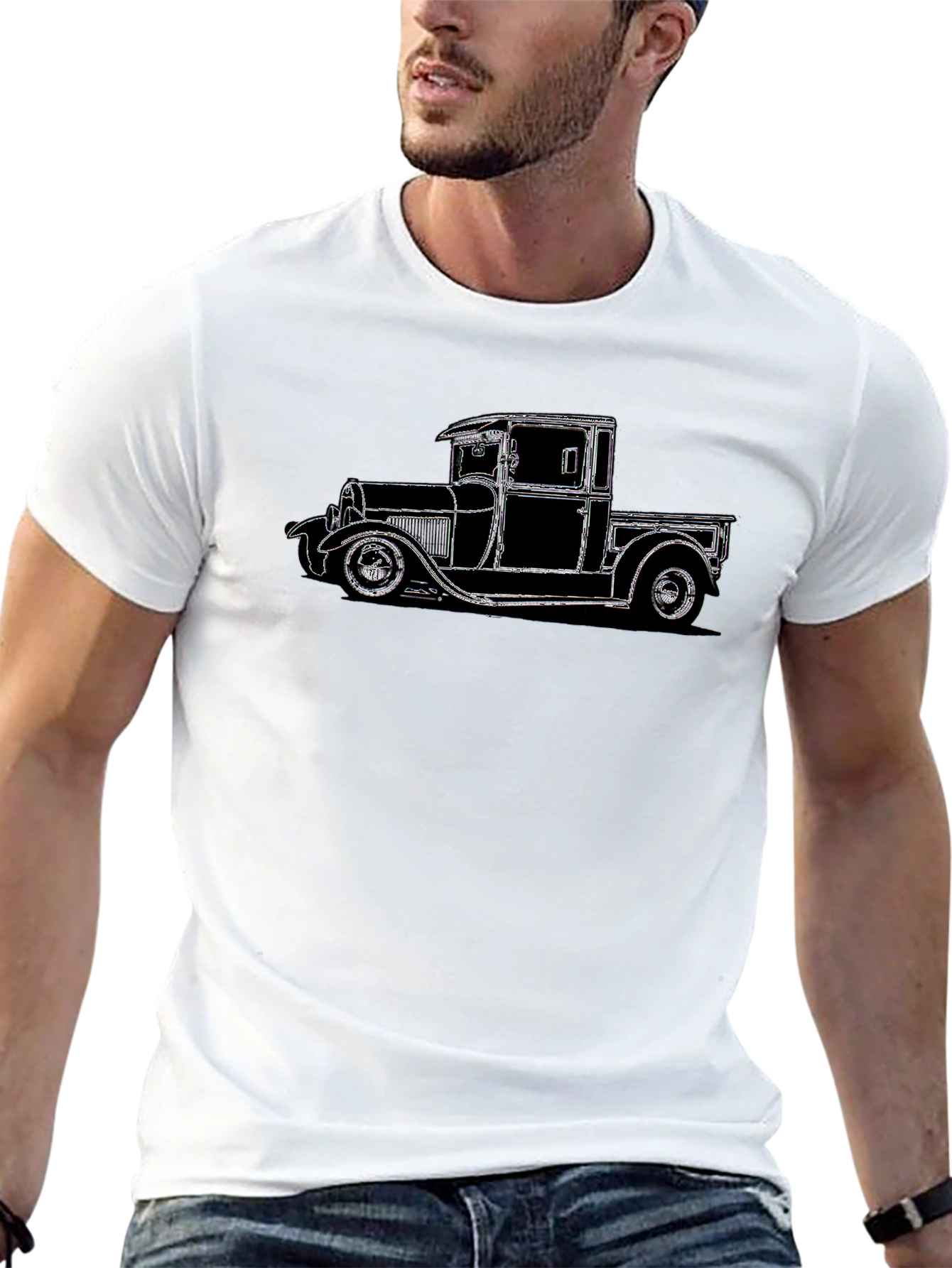 Esta elegante camiseta negra presenta un diseño clásico de camioneta en color contrastante, ideal para los amantes de los vehículos vintage. Confeccionada con materiales suaves y cómodos, es perfecta para el uso diario. El diseño detallado de la camioneta añade un toque único y atractivo a tu atuendo. Combínala con tus jeans o pantalones favoritos para un look casual y con estilo. Ya sea para un paseo relajado o una salida con amigos, esta camiseta es una excelente elección para expresar tu personalidad y pasión por los autos clásicos.