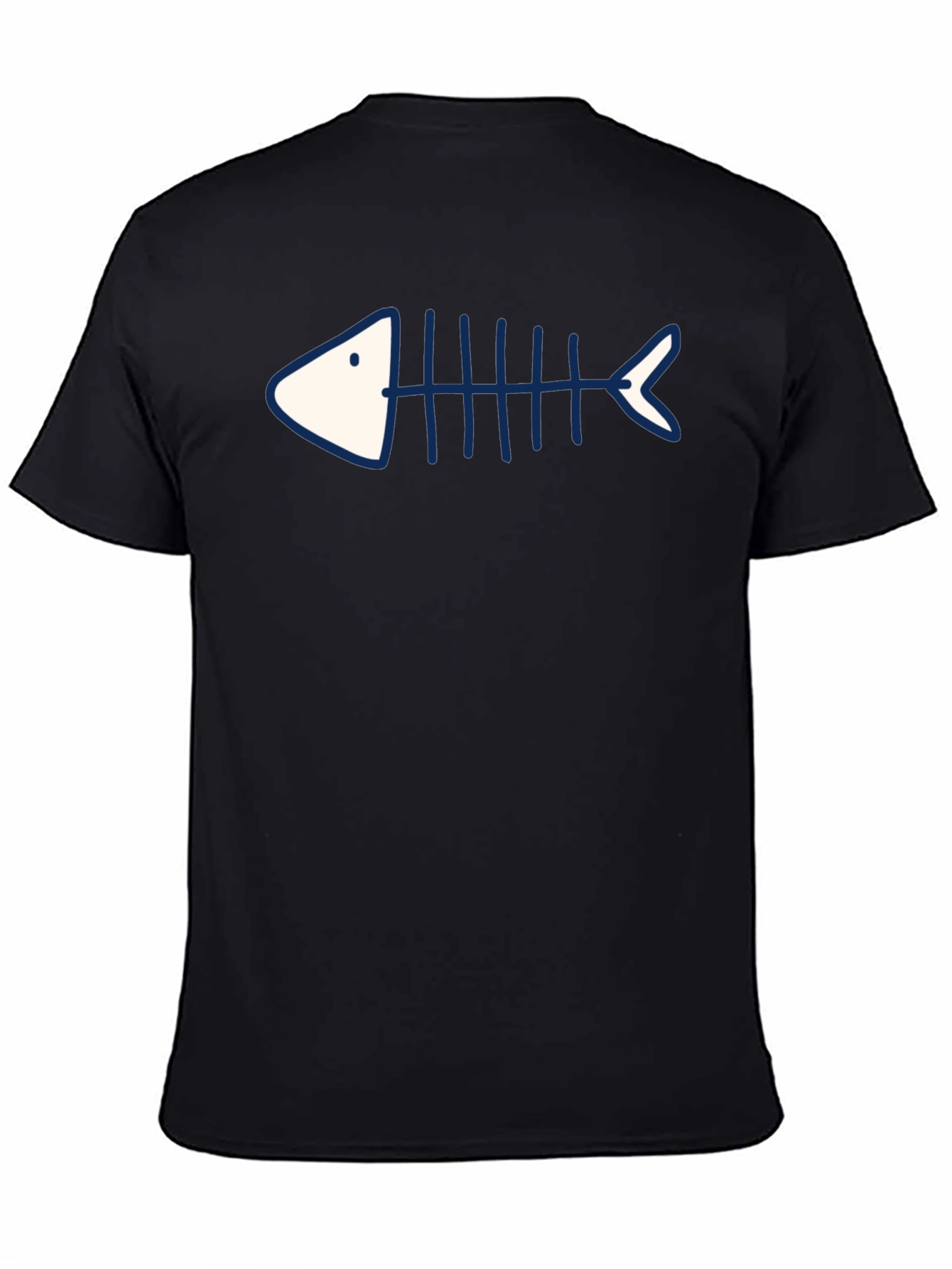 Camiseta Negra con Diseño de Esqueleto de Pescado Azul