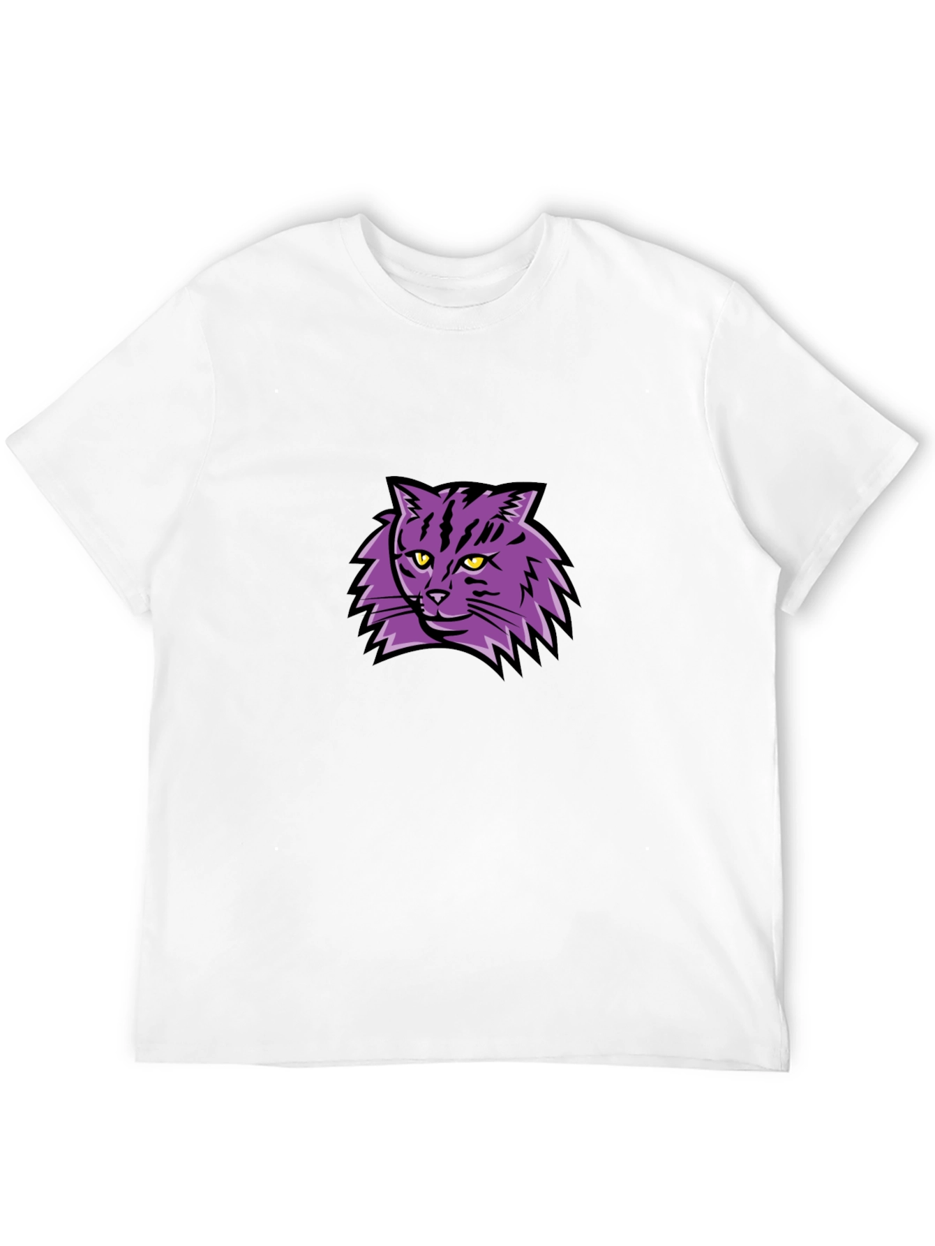 Camiseta Negra con Diseño de Gato Púrpura