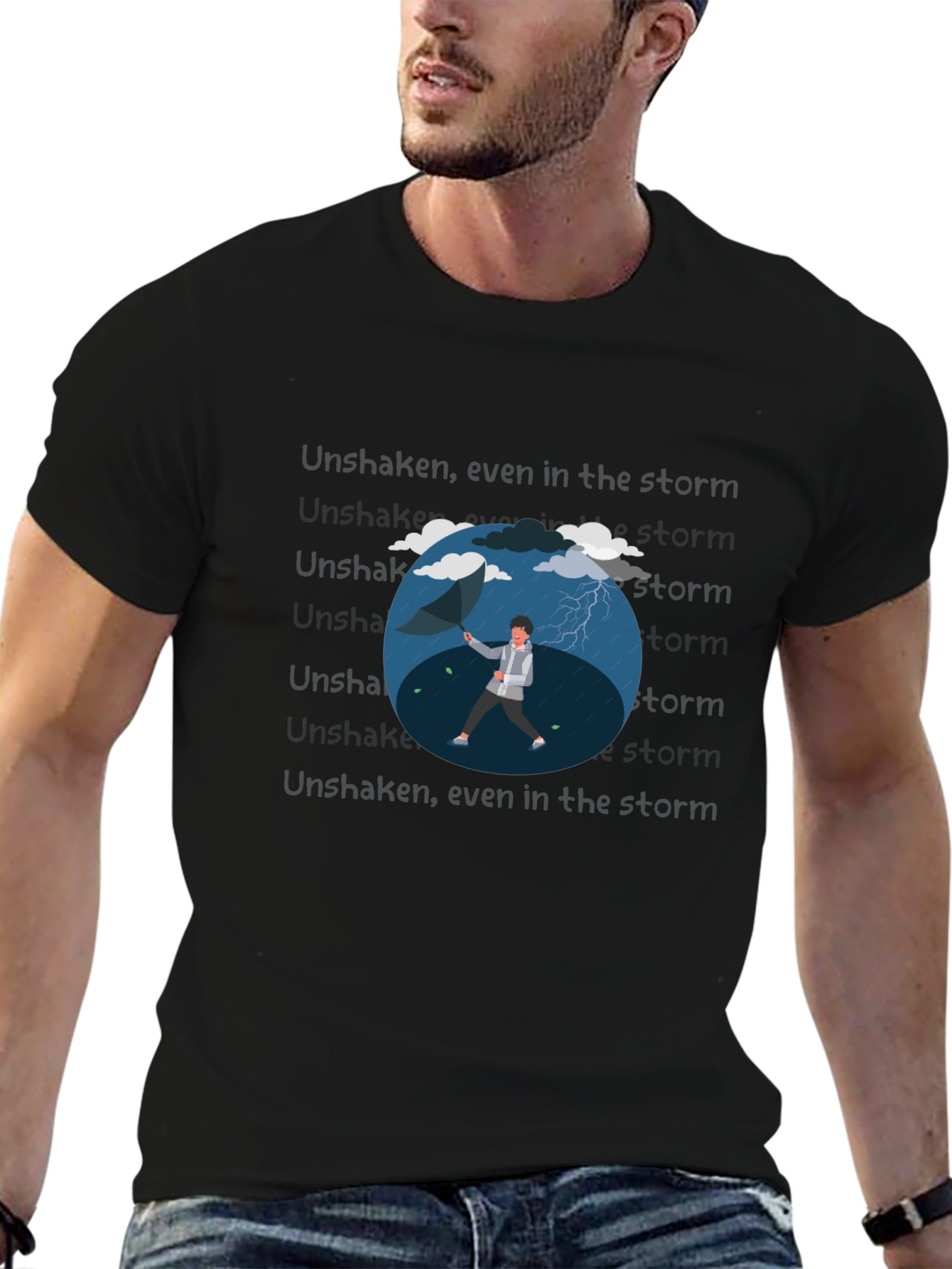 Camiseta Negra con Diseño de Lluvia