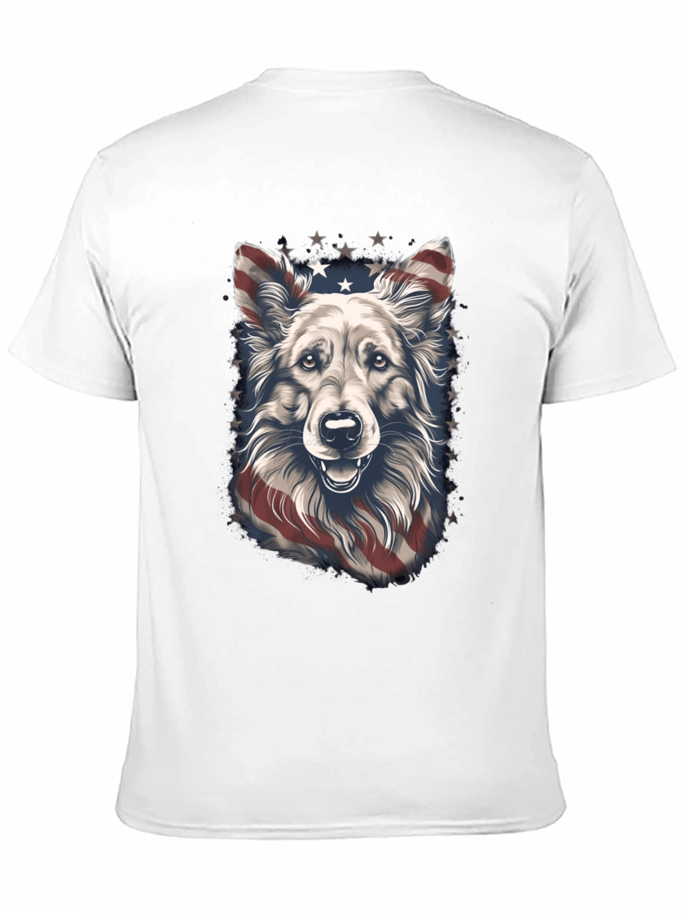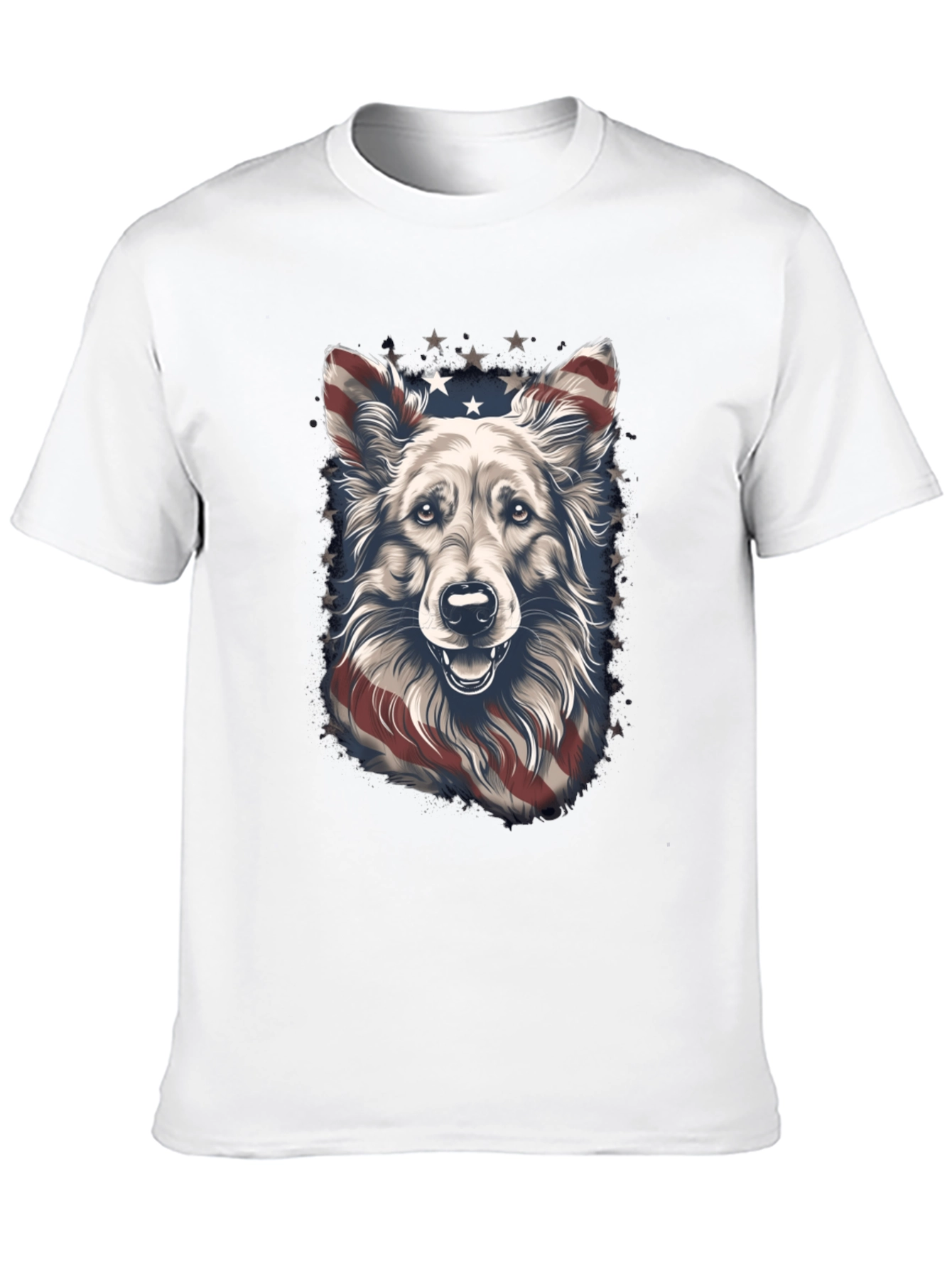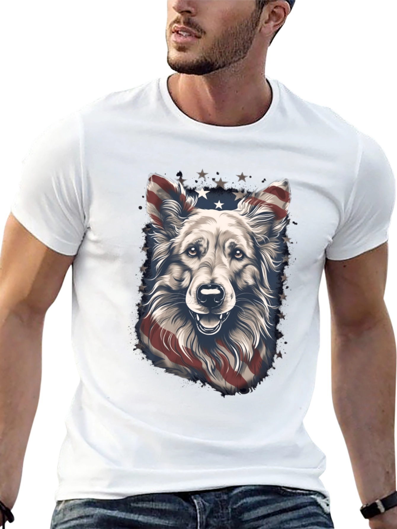 Luce un estilo único con esta camiseta negra de manga corta. Presenta un llamativo diseño de un perro con un estampado que evoca la bandera americana, con estrellas y rayas sutilmente incorporadas. La imagen del perro está dibujada con gran detalle, dando un toque artístico y patriótico a la prenda. Perfecta para expresar tu amor por los animales y tu espíritu americano con un toque de originalidad. Ideal para usar en el día a día, eventos casuales o celebraciones patrióticas. Hecha con materiales cómodos y duraderos.