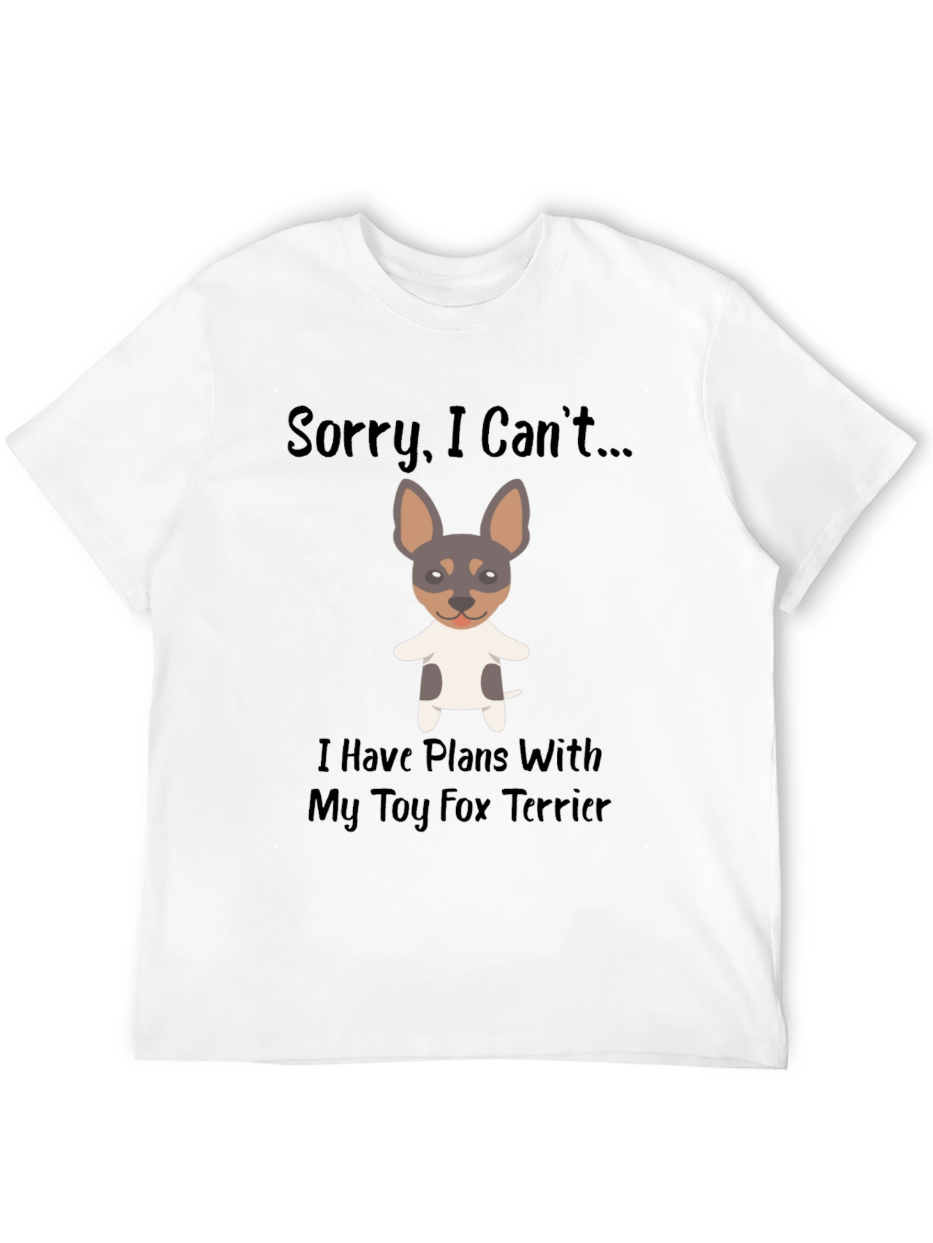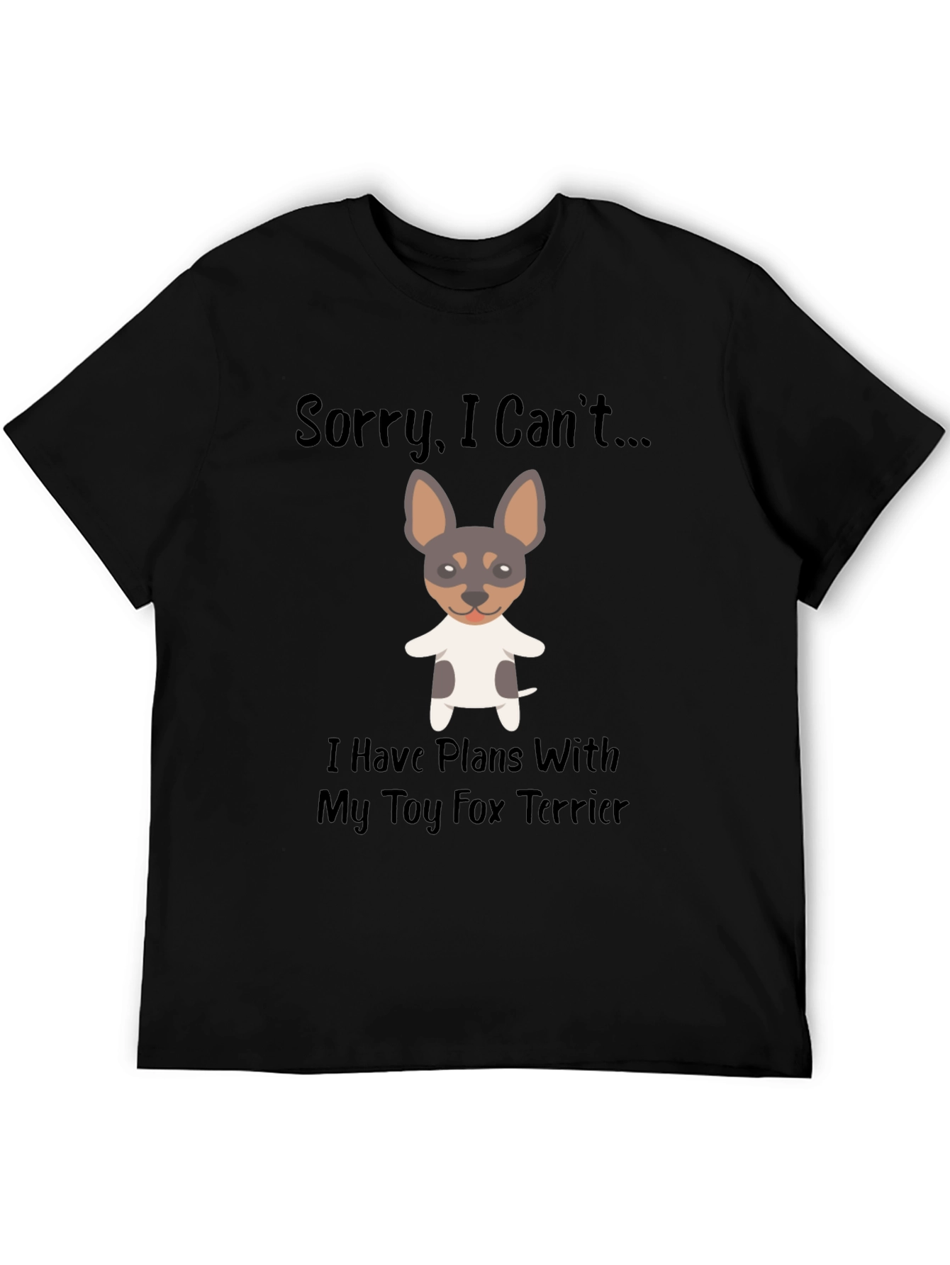 ¡Muestra tu amor por los Toy Fox Terriers con esta divertida camiseta! La camiseta negra presenta un adorable dibujo de un Toy Fox Terrier y la frase "Sorry, I Can't... I Have Plans With My Toy Fox Terrier". Perfecta para los amantes de los perros y dueños de esta raza en particular, esta camiseta es ideal para usar en el día a día, paseos con tu mascota o simplemente para relajarte en casa. Su diseño llamativo seguramente generará sonrisas y conversaciones. Fabricada con materiales suaves y cómodos, esta camiseta es una excelente adición a tu guardarropa y una manera original de expresar tu pasión por los animales.