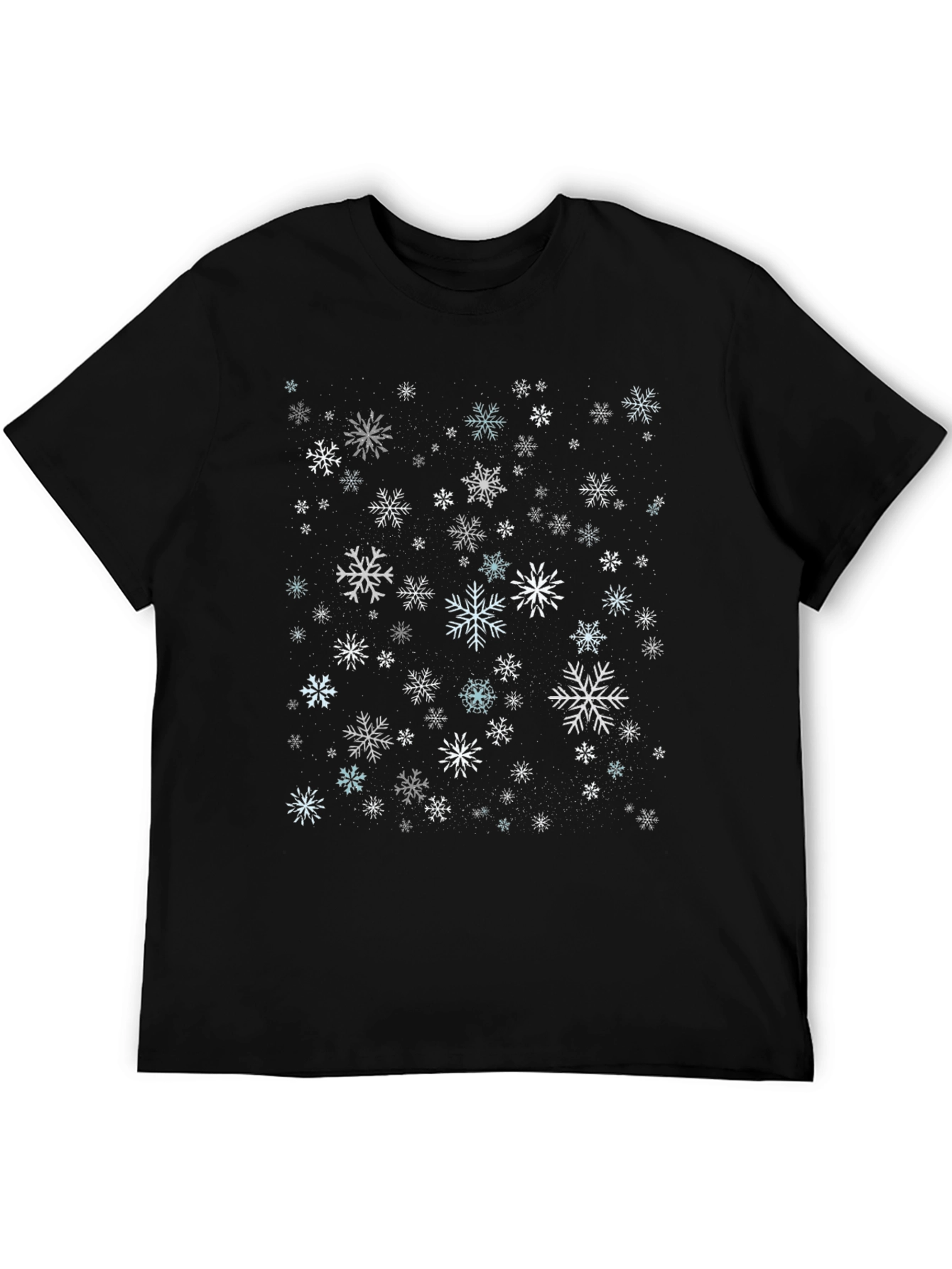 Camiseta Negra con Estampado de Copos de Nieve Invernal