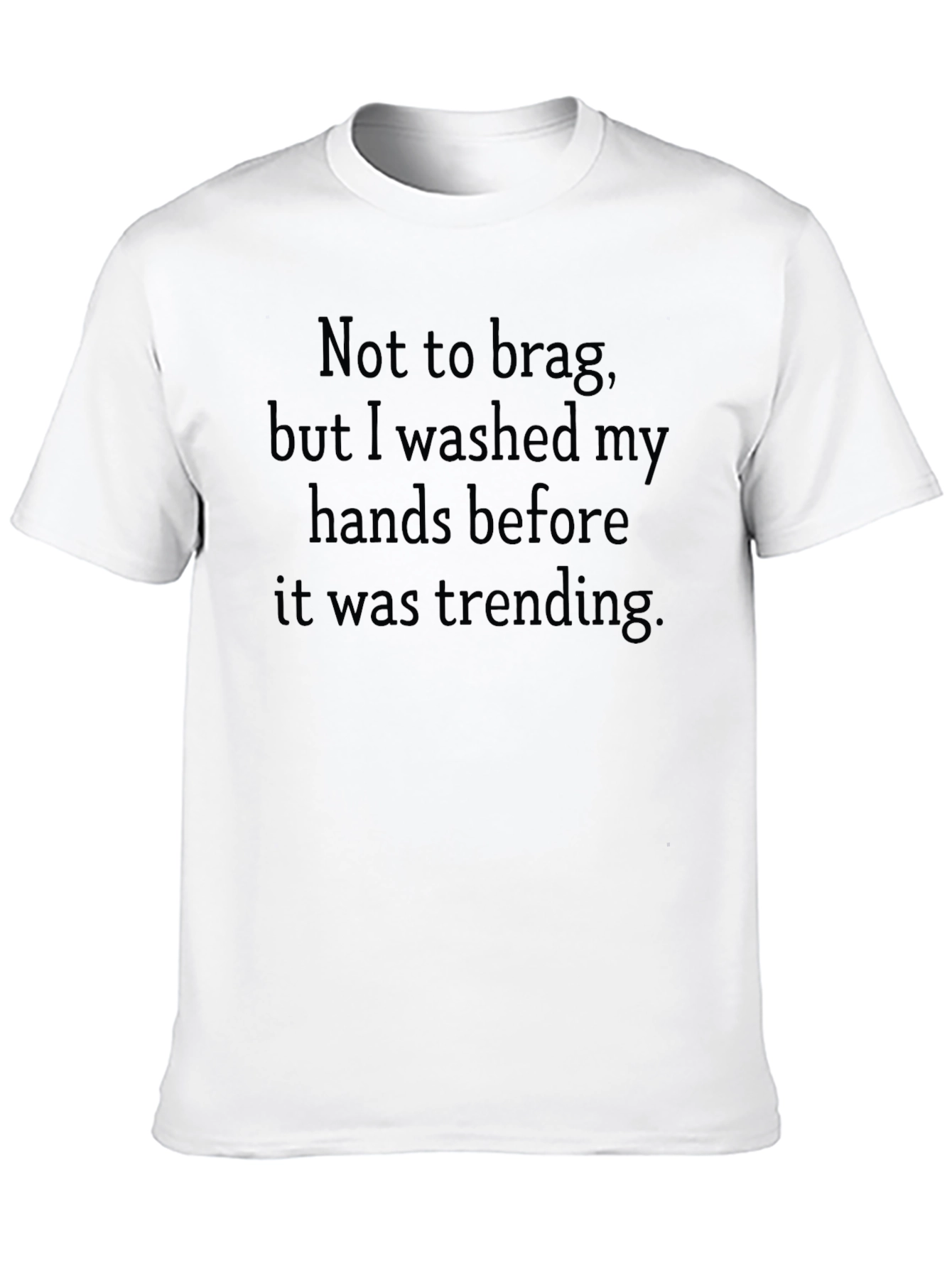 Esta elegante camiseta negra presenta un diseño divertido e ingenioso. Fabricada con un material suave al tacto, presumiblemente algodón o una mezcla de algodón, ofrece comodidad y estilo. La frase "Not to brag, but I washed my hands before it was trending" impresa en la parte delantera, agrega un toque humorístico. Ideal para personas con un sentido del humor y que valoran la higiene. Perfecta para uso diario, salidas casuales o para expresar tu personalidad de manera original. Una prenda que sin duda llamará la atención y generará sonrisas.