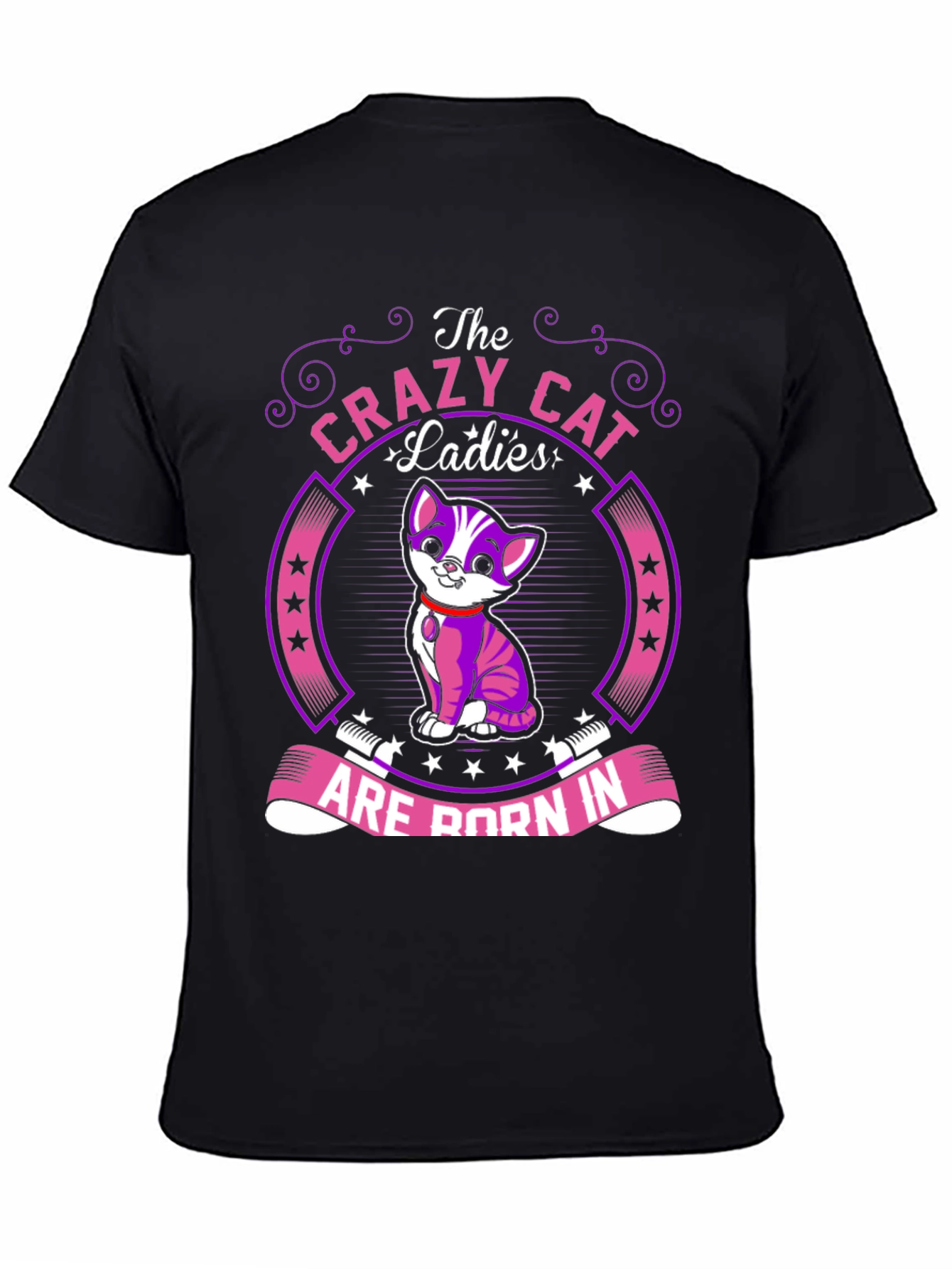 Luce tu amor por los gatos con esta original camiseta negra. Presenta un diseño llamativo con un adorable gato de caricatura en tonos morados y rosados, rodeado de la frase "The Crazy Cat Ladies Are Born In". Ideal para las amantes de los felinos que desean expresar su personalidad de manera divertida y con estilo. Perfecta para usar en el día a día, reuniones informales o como un regalo único para esa amiga especial que adora los gatos. Hecha con materiales cómodos y duraderos, esta camiseta te asegura confort y estilo por mucho tiempo.