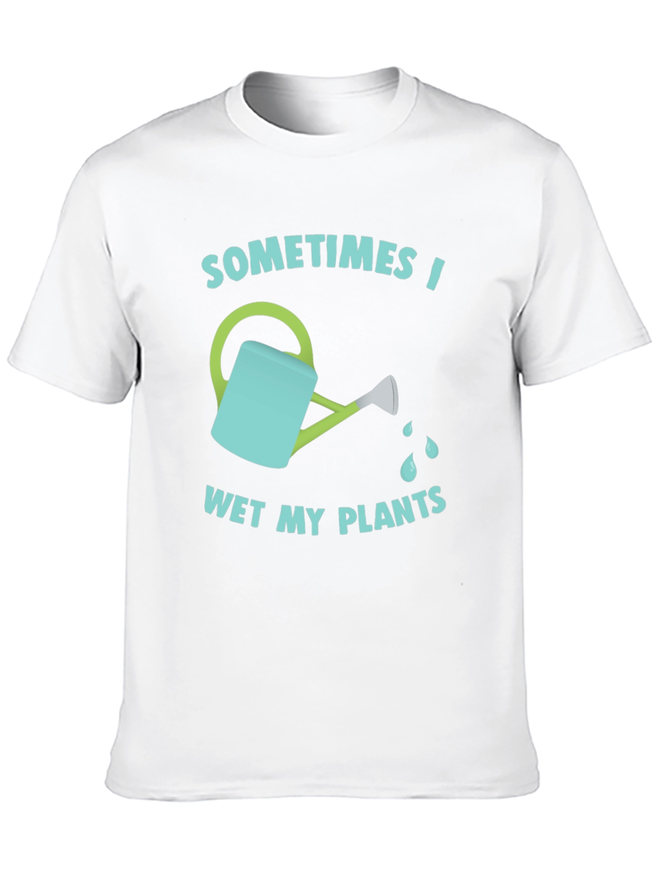 Esta camiseta negra presenta un diseño humorístico con una regadera azul y verde. La frase "SOMETIMES I WET MY PLANTS" (A veces riego mis plantas) está impresa en una fuente llamativa en la parte delantera. Perfecta para los amantes de la jardinería con sentido del humor, esta camiseta es ideal para usar durante las tareas de jardinería o para un día casual. Su diseño único la convierte en una excelente opción para expresar tu personalidad y pasión por las plantas con un toque divertido.