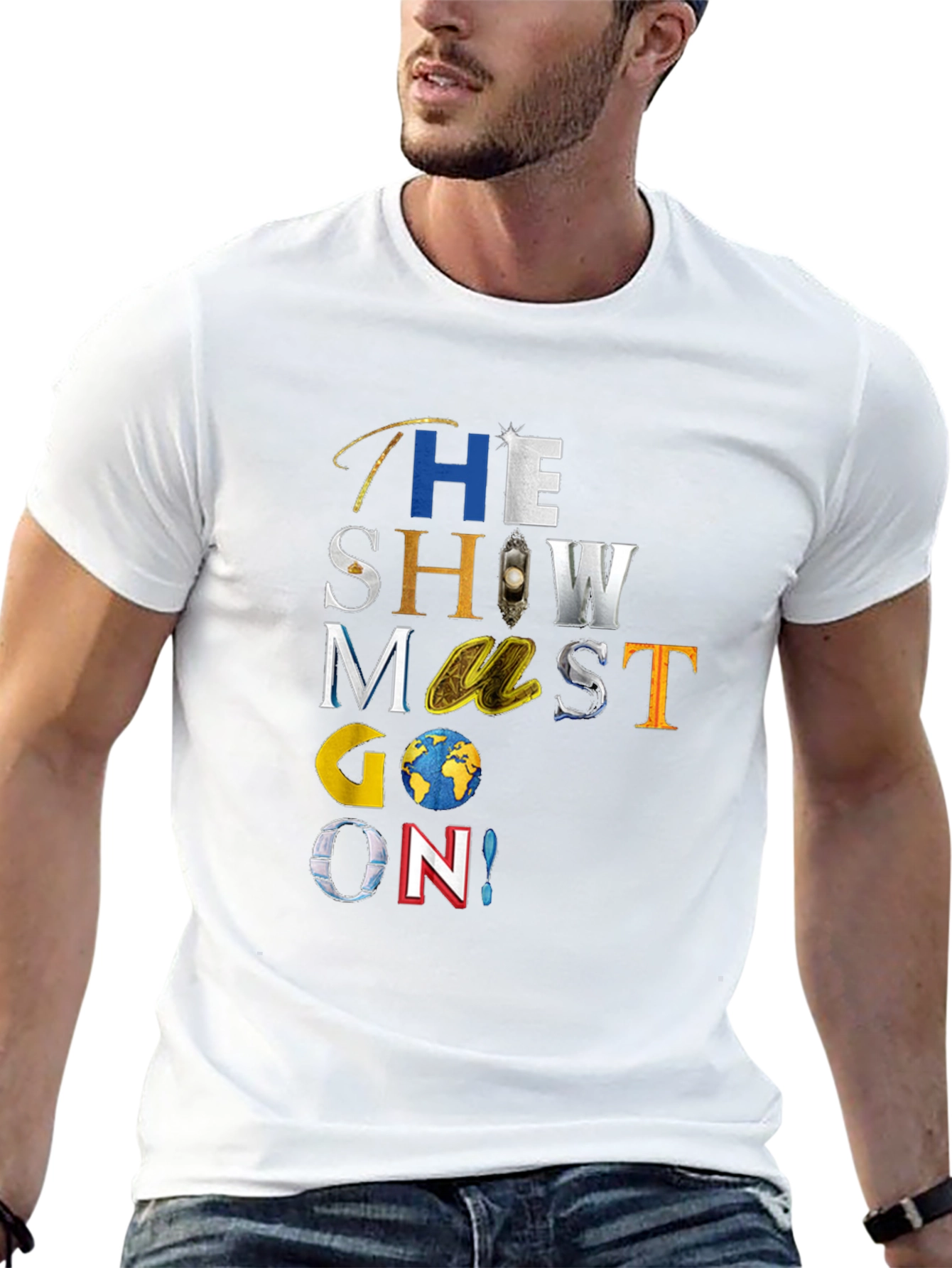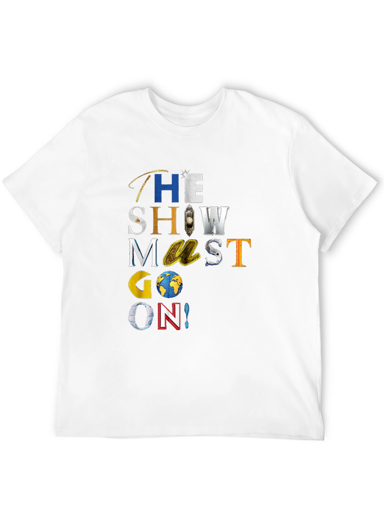 Luce esta llamativa camiseta negra con un diseño único que representa la icónica frase "El Show Debe Continuar". La camiseta presenta letras elaboradas con imágenes creativas y coloridas, cada una aportando un toque distintivo y llamativo. Ideal para fanáticos de la música, el teatro o aquellos que aman las prendas con un mensaje inspirador. Perfecta para usar en conciertos, eventos artísticos o simplemente para expresar tu personalidad única en el día a día. Fabricada con materiales suaves y cómodos, esta camiseta no solo se ve bien, sino que también te brinda una sensación agradable al tacto. ¡Atrévete a destacar con esta prenda original y llena de estilo!