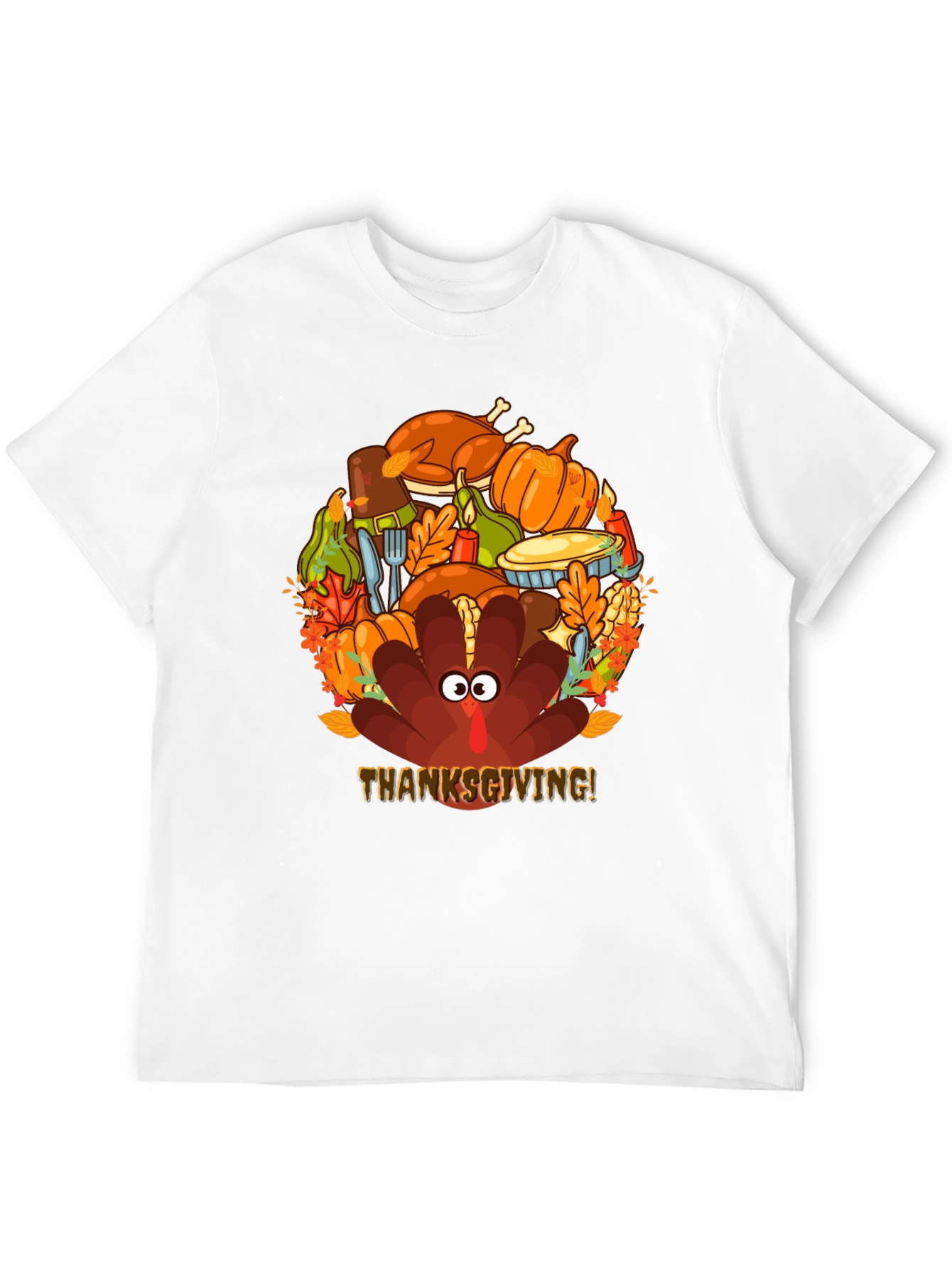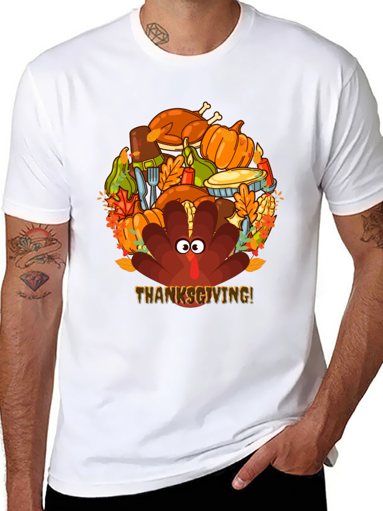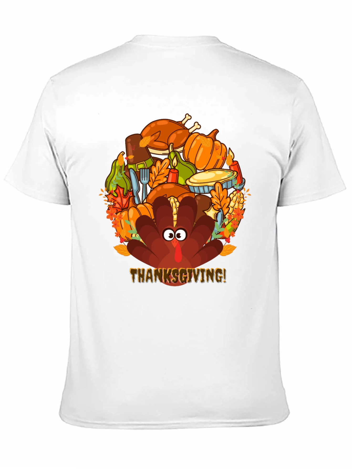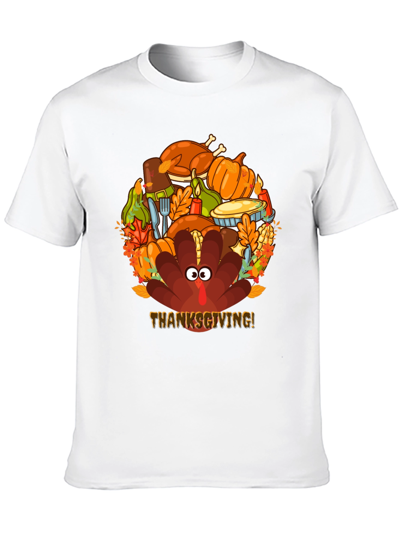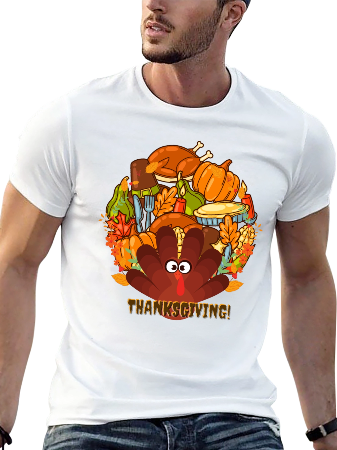 Celebra el Día de Acción de Gracias con estilo con esta llamativa camiseta negra. Presenta un diseño circular vibrante con un pavo caricaturesco, rodeado de elementos clásicos de la festividad como calabazas, un pavo asado y hojas de otoño. La inscripción "THANKSGIVING!" destaca en letras doradas. Esta camiseta de manga corta es ideal para lucir en la cena familiar o en cualquier reunión festiva. Su diseño único y alegre la convierte en una prenda perfecta para expresar tu espíritu festivo. Fabricada con materiales de alta calidad para garantizar comodidad y durabilidad. ¡Prepárate para disfrutar de la temporada de Acción de Gracias con esta prenda imprescindible!