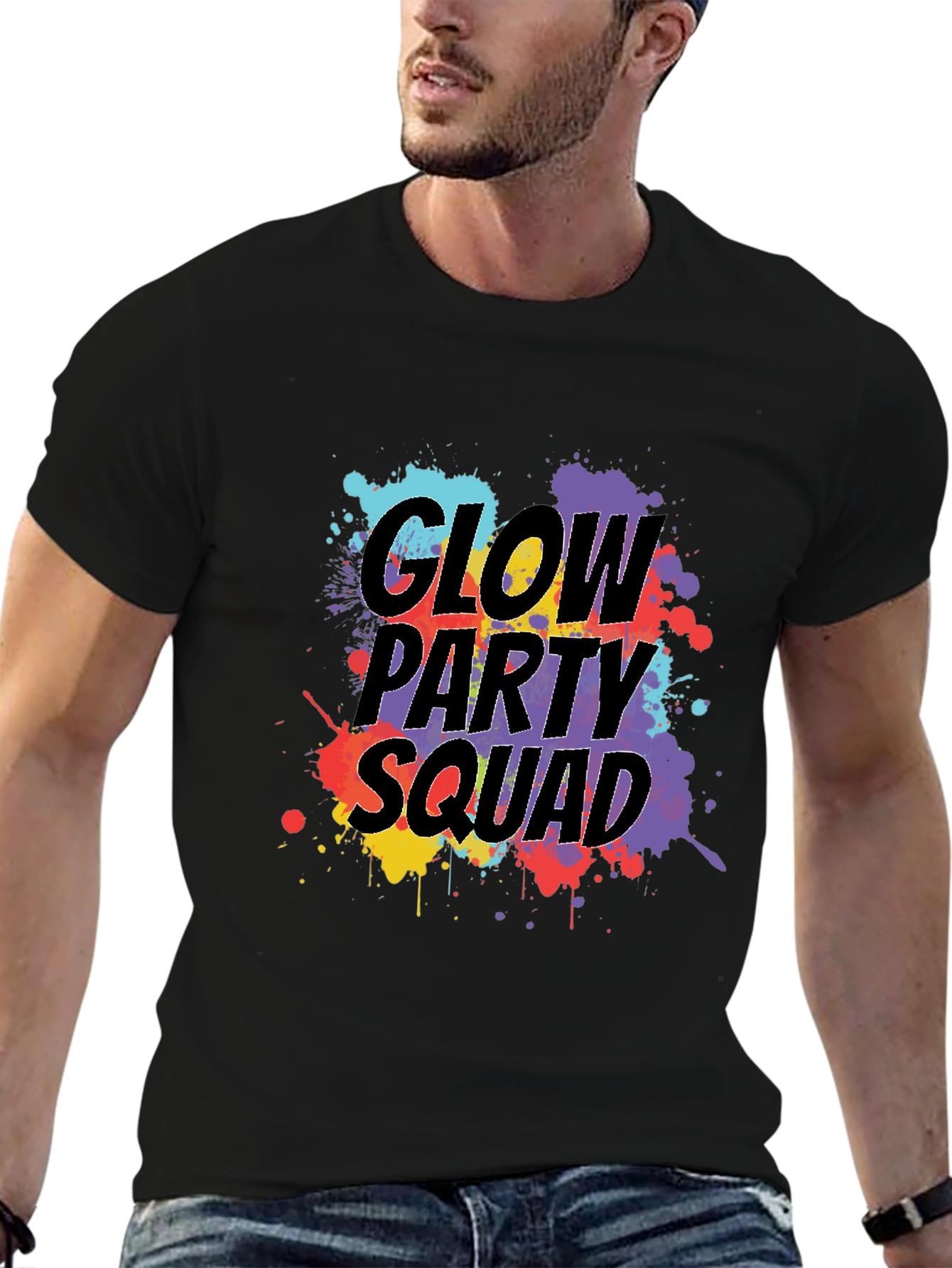 ¡Ilumina la noche con esta camiseta negra de diseño vibrante! La frase "Glow Party Squad" resalta en colores neón sobre un fondo de salpicaduras artísticas. Ideal para fiestas, eventos nocturnos o simplemente para destacar con un estilo único y llamativo. Confeccionada en un tejido suave y cómodo, esta camiseta es perfecta para bailar toda la noche o relajarte con amigos. Añade un toque de diversión y color a tu guardarropa con esta prenda imprescindible para cualquier amante de las fiestas y la moda urbana.