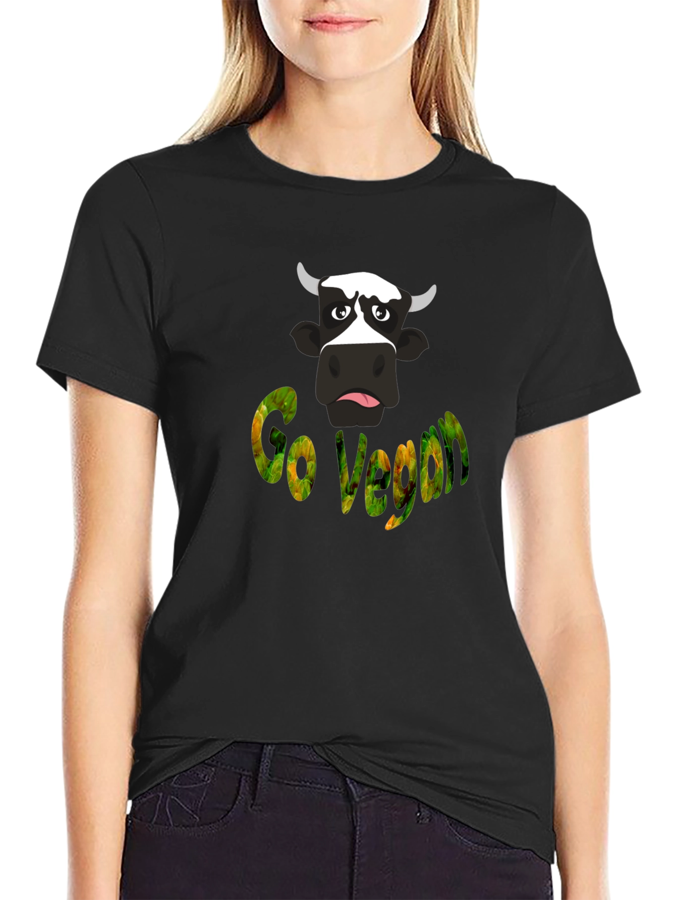 Camiseta Negra Go Vegan con Diseño de Vaca