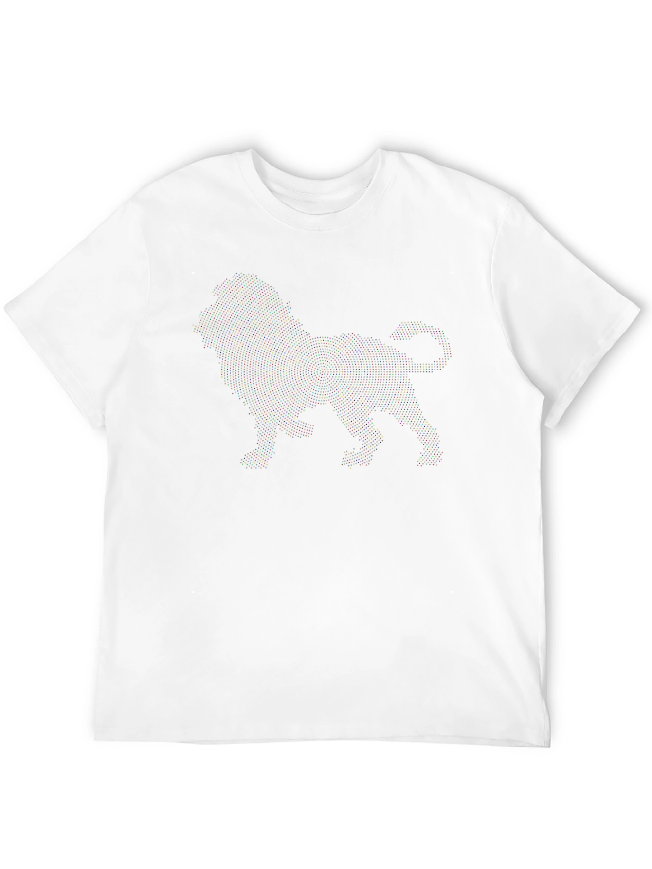 Luce esta moderna camiseta negra de hombre con un diseño único. Presenta un llamativo león formado por una miríada de puntos de colores, creando un efecto visual fascinante y moderno. Fabricada en un tejido suave y cómodo, esta camiseta de corte clásico es perfecta para cualquier ocasión casual. Ya sea para una salida informal o para un evento social relajado, esta prenda te permitirá destacar con estilo y originalidad. Combínala con tus jeans o pantalones favoritos y presume de un look impecable y a la moda. ¡Atrévete a marcar la diferencia con esta camiseta de diseño vanguardista!