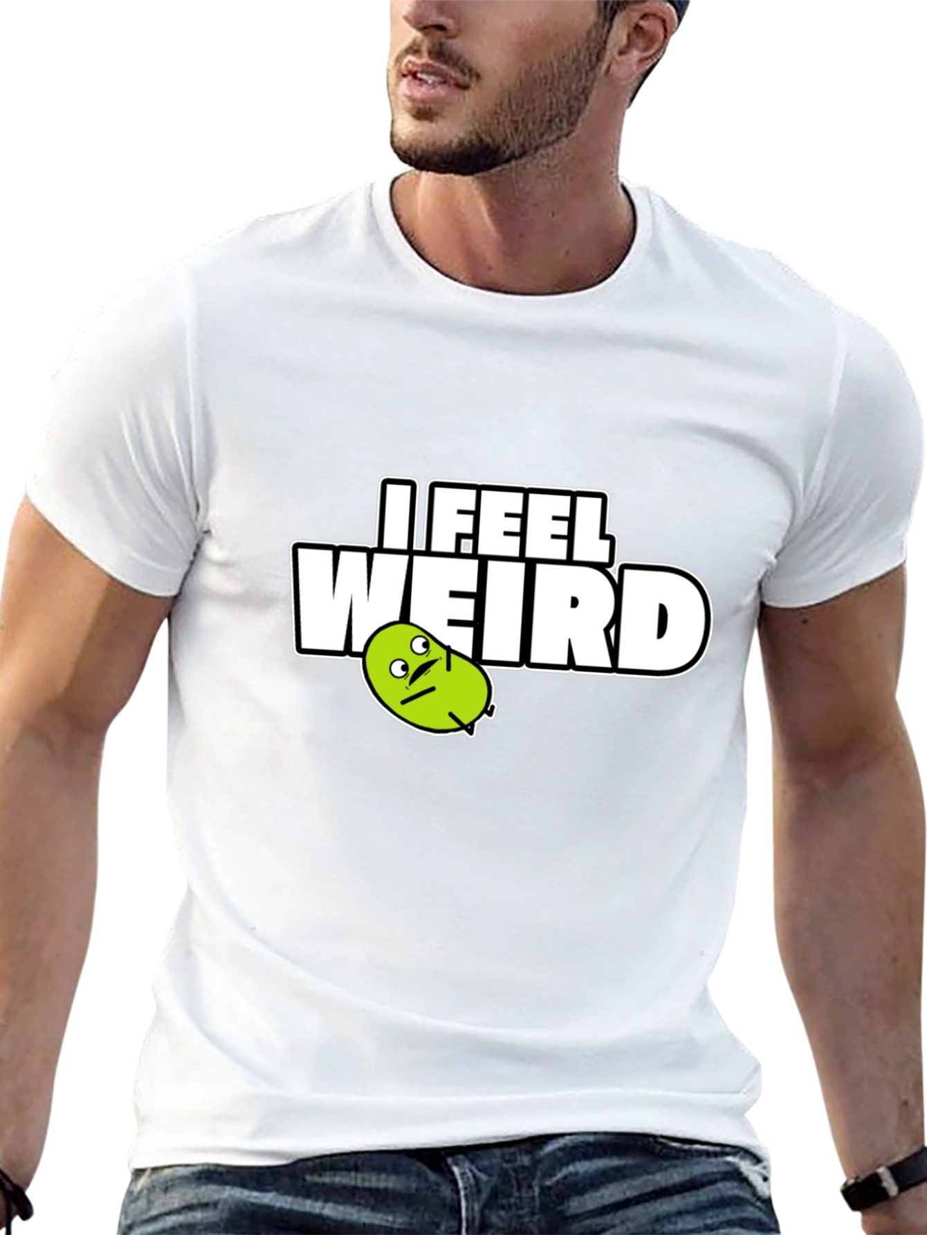 Exprésate con esta camiseta negra para hombre. El diseño presenta la frase "I Feel Weird" en blanco con un divertido personaje verde. Ideal para un look casual y desenfadado. Perfecta para el uso diario, expresar tu personalidad y atraer miradas. Su tela suave y cómoda te encantará. ¡Muestra tu lado original con esta camiseta!