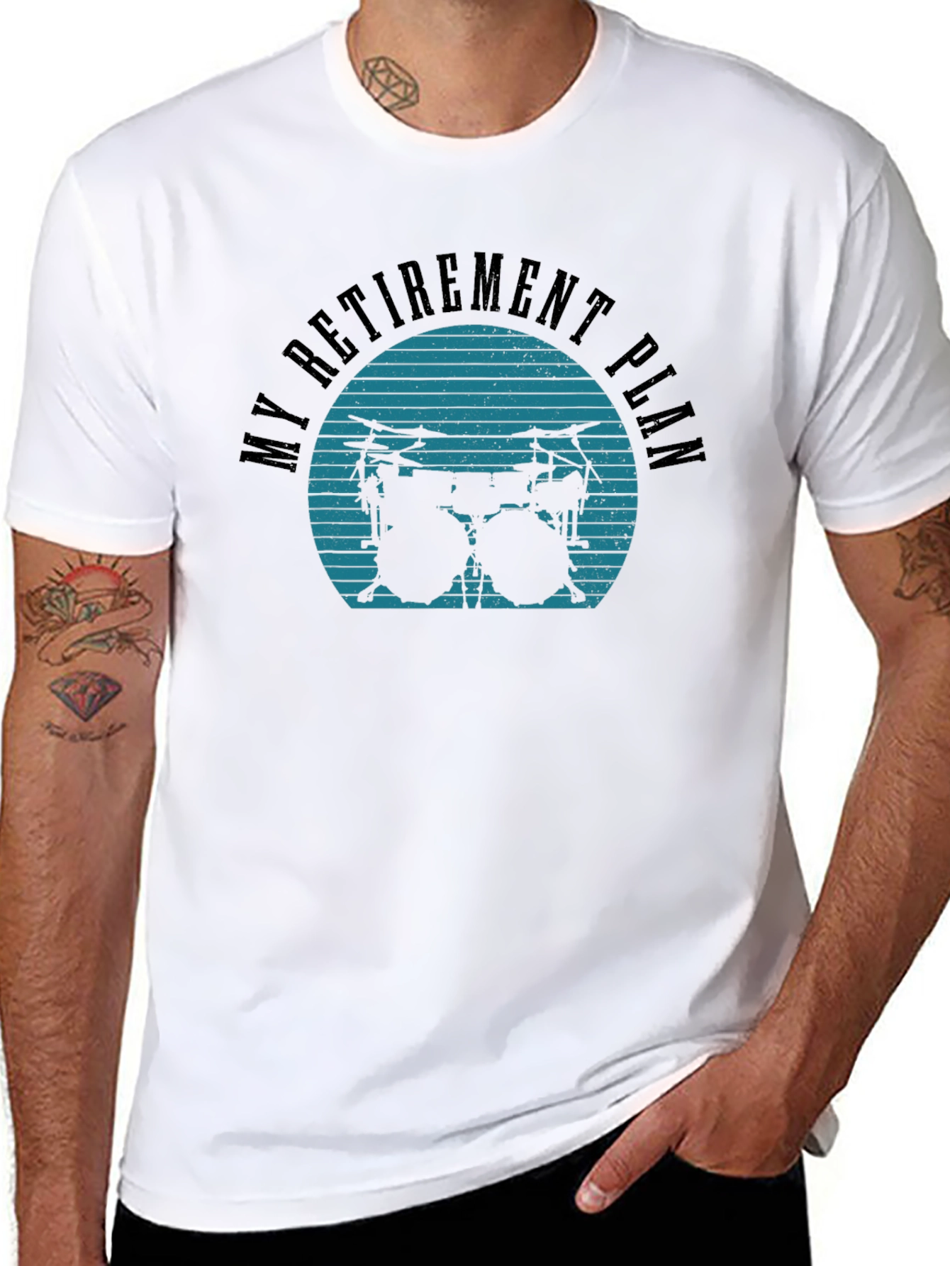 Luce un estilo relajado con esta camiseta negra de manga corta. Con un diseño llamativo que presenta una batería estilizada sobre un fondo azul con el texto "My Retirement Plan", es perfecta para amantes de la música y la batería. Ideal para un look casual, salidas con amigos o simplemente para expresar tu pasión por la música. Fabricada con materiales suaves y cómodos, esta camiseta te brindará confort durante todo el día. Una prenda original y divertida para aquellos que tienen la música en su ADN.