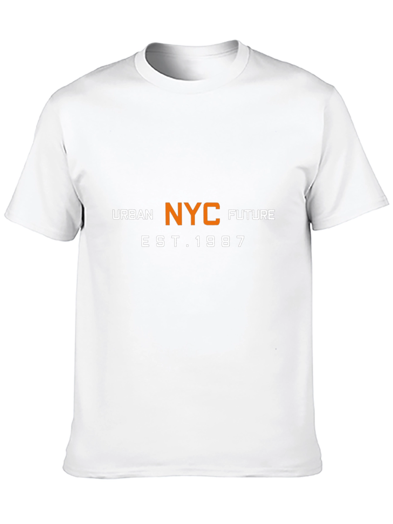 Descubre la elegancia urbana con esta camiseta negra de manga corta. Presenta un diseño moderno con las palabras "URBAN", "NYC" en llamativo naranja y "FUTURE", junto con "EST. 1987" en un estilo limpio y nítido. Ideal para un look casual pero con estilo, esta camiseta es perfecta para el día a día, ya sea para salir con amigos o para relajarte en casa. Su color negro la hace fácilmente combinable con cualquier outfit, mientras que el diseño gráfico le da un toque distintivo. Añade esta prenda versátil y con personalidad a tu guardarropa.
