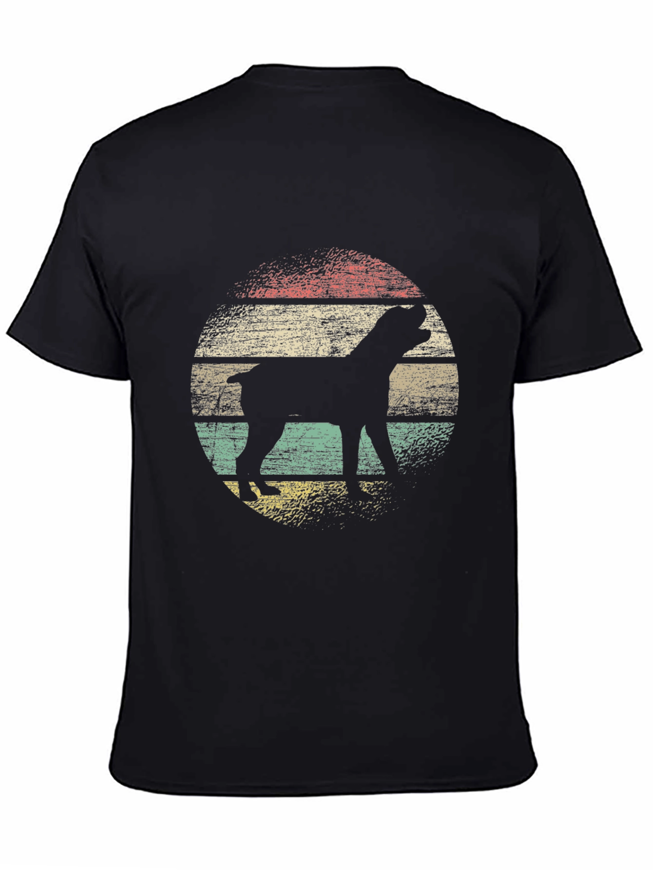 Luce esta camiseta negra de algodón con un diseño retro único. Presenta una silueta de perro en negro sobre un círculo con franjas horizontales en tonos rojo, beige, aguamarina y amarillo, dándole un toque vintage y original. Ideal para amantes de los animales y para quienes buscan una prenda casual con estilo. Perfecta para el día a día, salidas informales o para expresar tu personalidad con un diseño llamativo y confortable. Combínala con tus jeans o shorts favoritos para un look relajado y a la moda. ¡Añade esta prenda imprescindible a tu armario!
