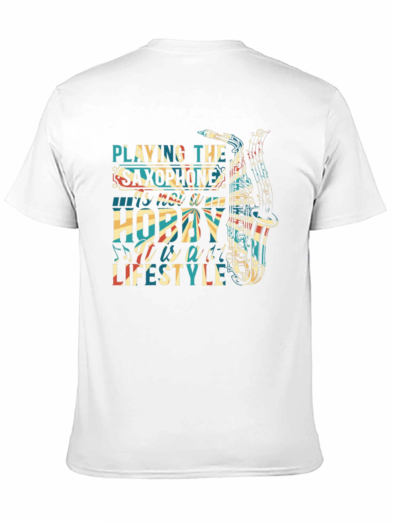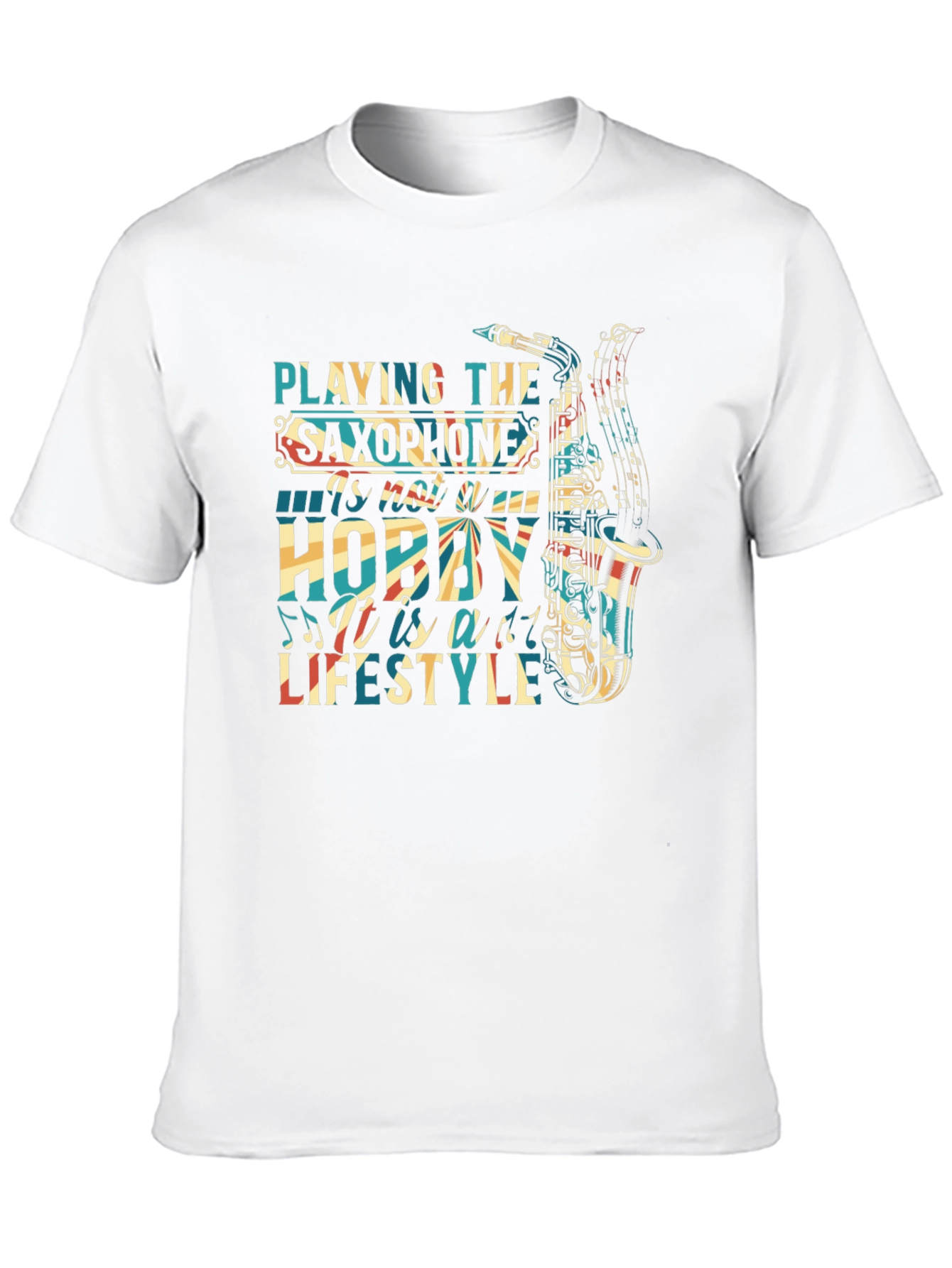 Esta elegante camiseta negra presenta un diseño llamativo que celebra la pasión por el saxofón. El estampado muestra un saxofón estilizado junto con la frase "Playing the saxophone is not a hobby it is a lifestyle" (Tocar el saxofón no es un hobby, es un estilo de vida), ideal para músicos y amantes de este instrumento. El diseño incorpora una paleta de colores retro y vibrantes que le dan un toque moderno y atractivo. Perfecta para usar en conciertos, ensayos, o simplemente para expresar tu amor por la música en tu día a día. Fabricada con materiales de alta calidad, esta camiseta ofrece comodidad y durabilidad, asegurando que luzcas bien mientras compartes tu pasión por el saxofón.
