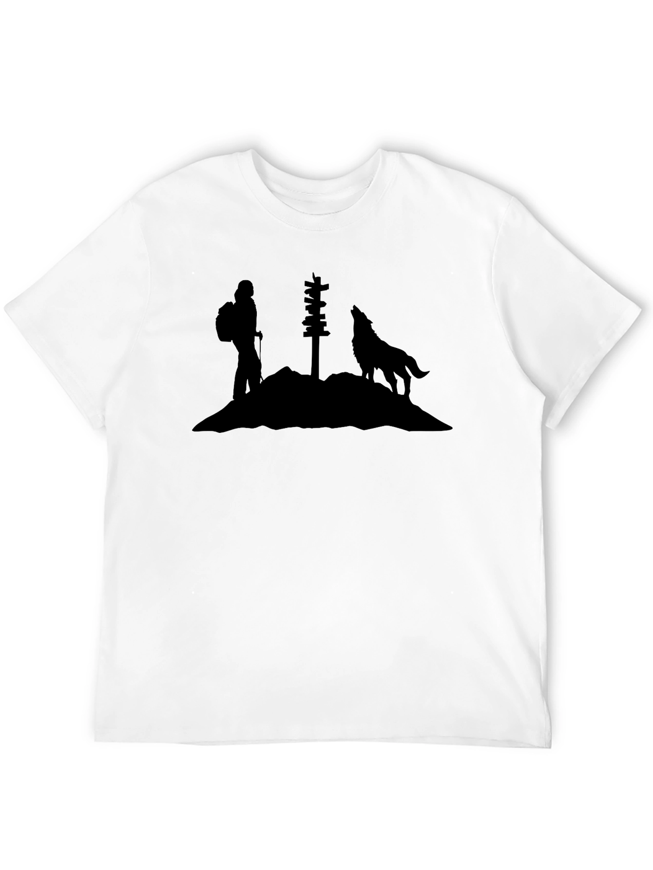 Luce esta llamativa camiseta negra con un diseño único. La prenda presenta una silueta en negro que representa a un senderista, un poste indicador y un lobo aullando, evocando la aventura y la naturaleza salvaje. Fabricada con materiales suaves y cómodos, esta camiseta es perfecta para el uso diario, ya sea para actividades al aire libre o para expresar tu estilo personal. Su diseño minimalista y elegante la convierte en una prenda versátil que combina fácilmente con diferentes estilos. Ideal para amantes de la naturaleza, excursionistas y aquellos que aprecian un diseño original y moderno.