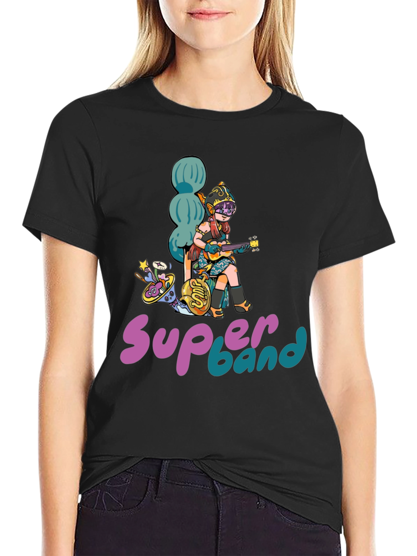 Luce un estilo único con esta camiseta negra de algodón, perfecta para los amantes de la música y el diseño original. La camiseta presenta una ilustración vibrante y detallada de una banda musical de fantasía con un diseño moderno y atractivo. El diseño incluye la palabra 'Superband' en letras coloridas que resaltan sobre el fondo negro, añadiendo un toque divertido y llamativo. Ideal para usar a diario, en conciertos o como una declaración de tu pasión por la música. Esta camiseta no solo es cómoda, sino también una forma de expresar tu personalidad y estilo.
