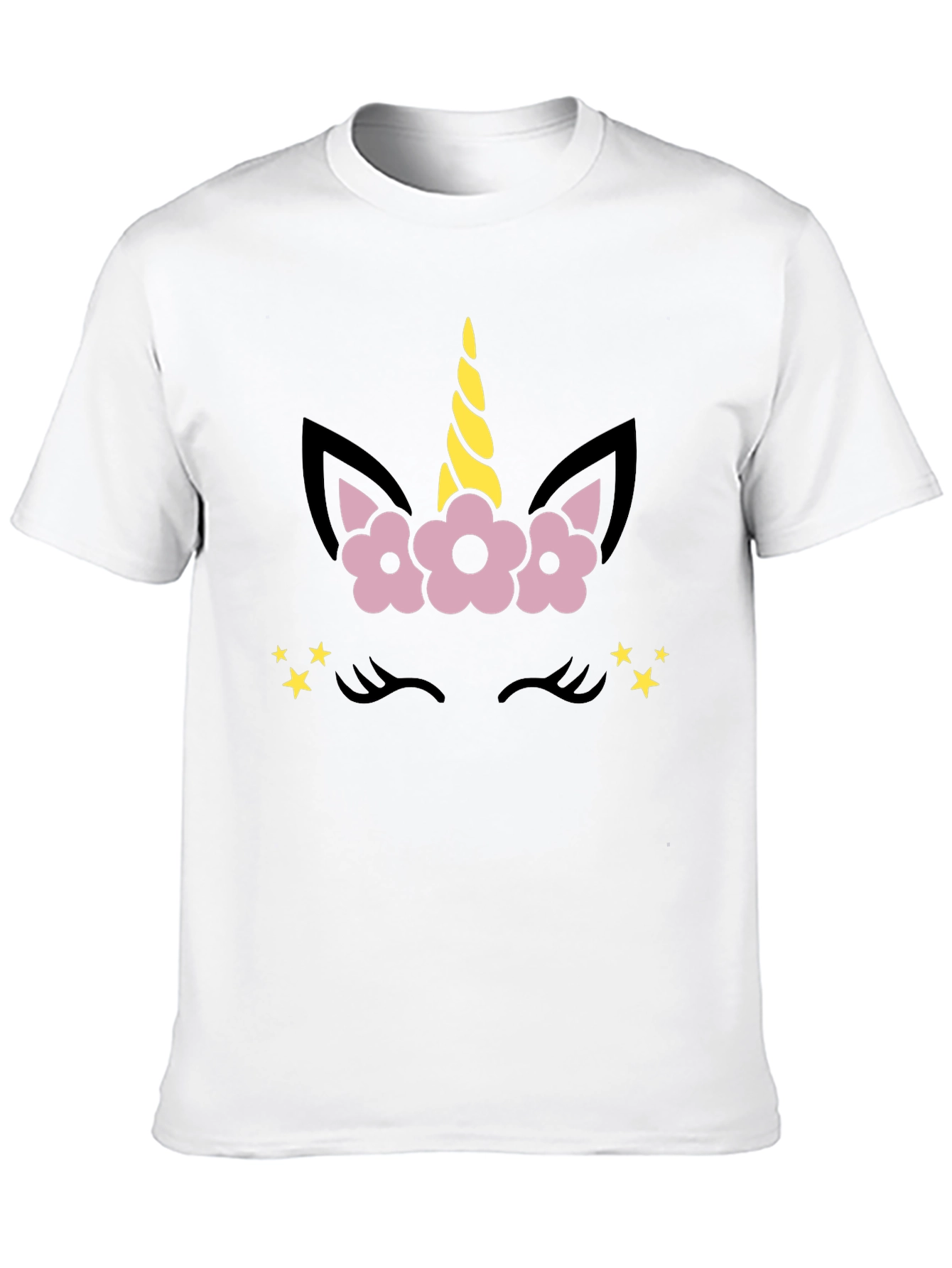 Luce esta encantadora camiseta negra con un diseño de unicornio floral. El estampado presenta un unicornio con un cuerno dorado, orejas adornadas con flores rosadas y dulces ojos cerrados con pequeñas estrellas doradas alrededor. Perfecta para quienes aman la fantasía y el estilo divertido. Esta camiseta es ideal para usar en salidas casuales, fiestas temáticas o simplemente para agregar un toque mágico a tu día a día. El color negro de la camiseta hace que el diseño resalte aún más. ¡Atrévete a destacar con esta prenda única y original!