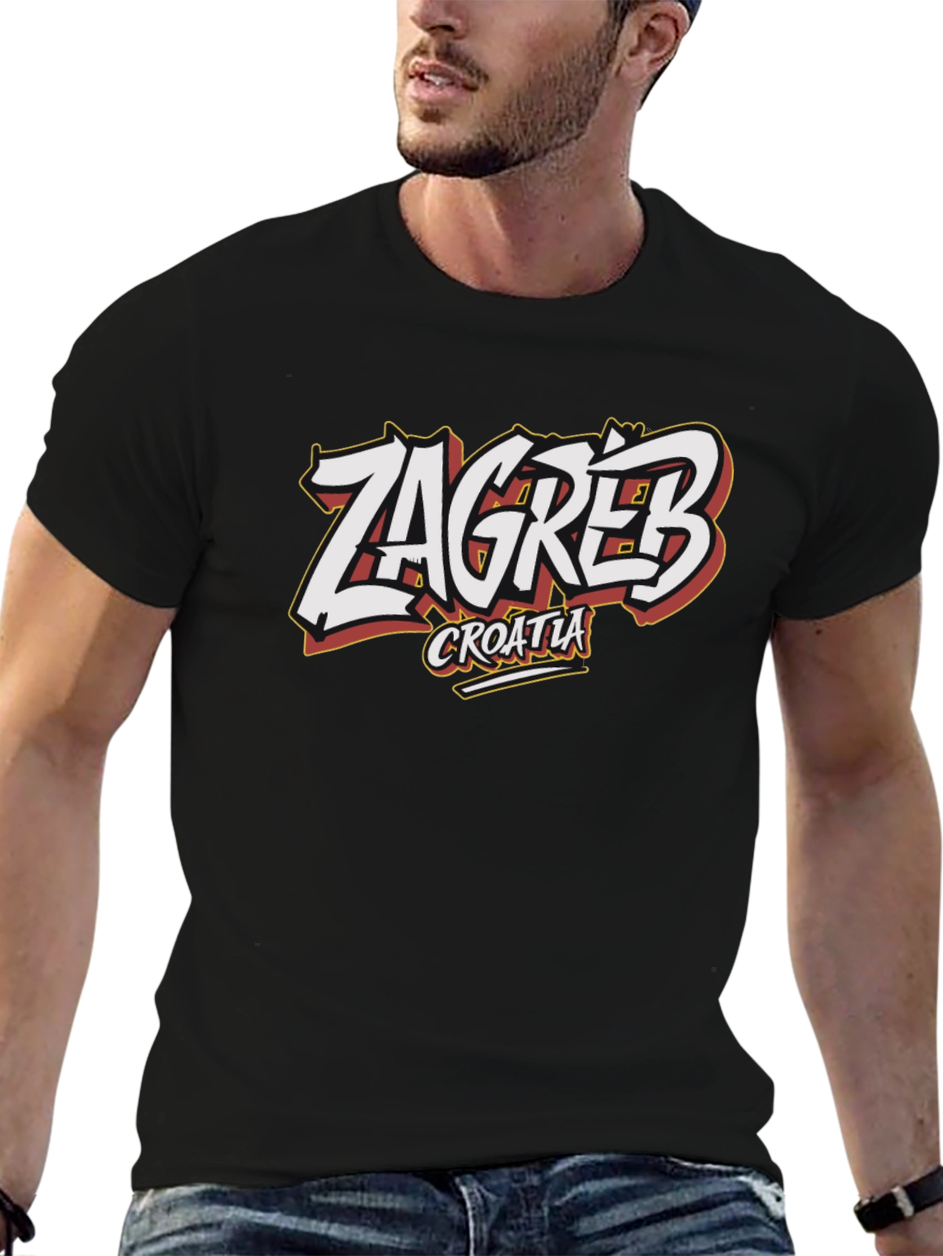 Muestra tu amor por Zagreb con esta camiseta negra de diseño único. Presenta un audaz estampado con la palabra "Zagreb" en letras blancas, delineadas en rojo y amarillo, junto con "Croacia" en una fuente estilizada debajo. Fabricada con materiales suaves y cómodos, esta camiseta es ideal para uso diario, ya sea para salir con amigos o simplemente relajarte en casa. Su diseño moderno y llamativo la convierte en una excelente adición a cualquier guardarropa. Perfecta para los amantes de los viajes, los entusiastas de la cultura croata o cualquiera que busque una prenda de vestir con un toque distintivo y original.