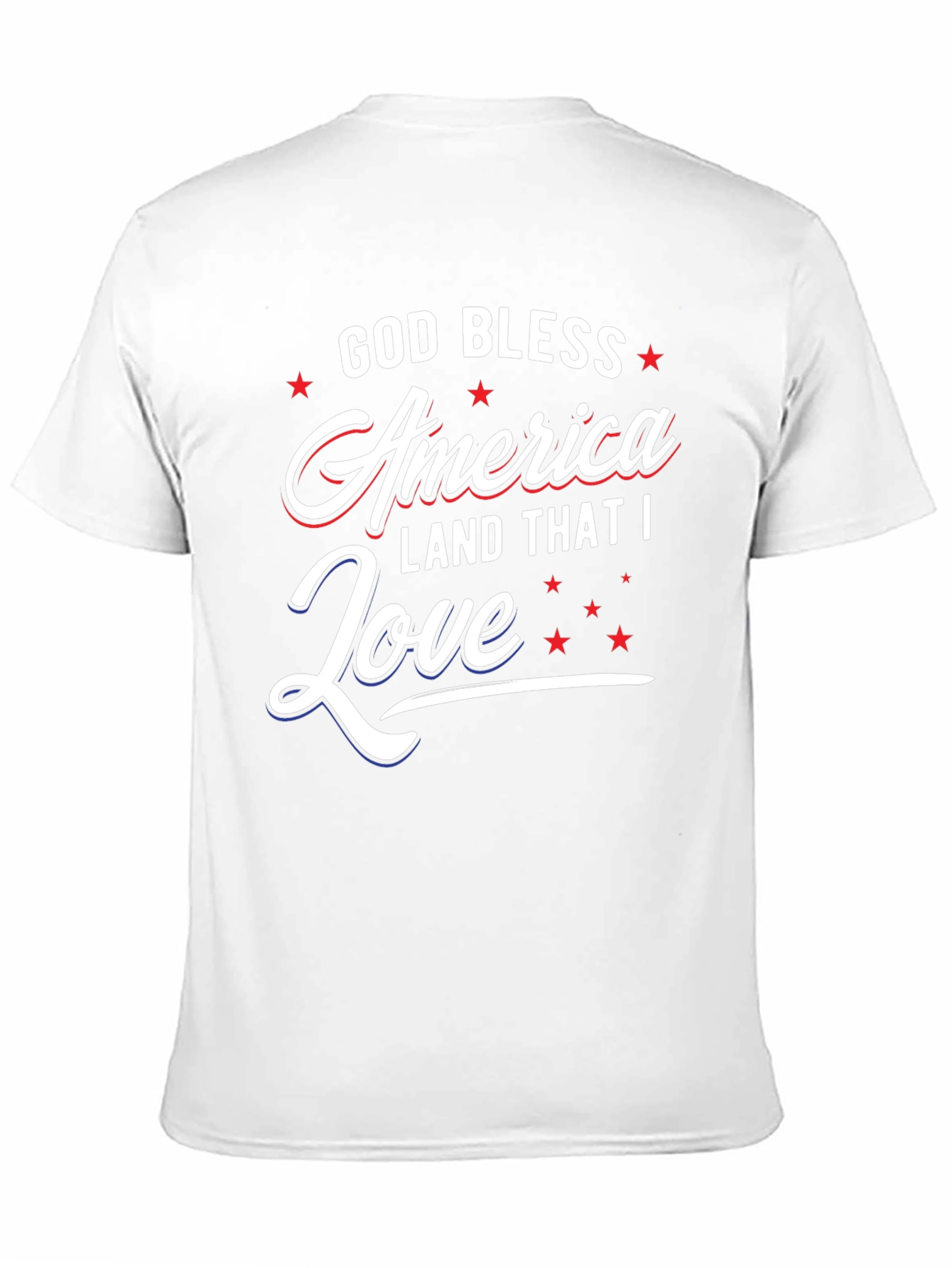Muestra tu orgullo americano con esta llamativa camiseta negra. Presenta un diseño patriótico con las palabras "God Bless America" y "Land That I Love" en una elegante fuente blanca con detalles en rojo y azul. Perfecta para el 4 de julio, el Día de los Caídos o cualquier día en que quieras celebrar tu amor por los Estados Unidos. El tejido suave y cómodo hace que esta camiseta sea ideal para el uso diario. Combínala con vaqueros o pantalones cortos para un look casual pero elegante. Demuestra tu patriotismo con esta prenda imprescindible.